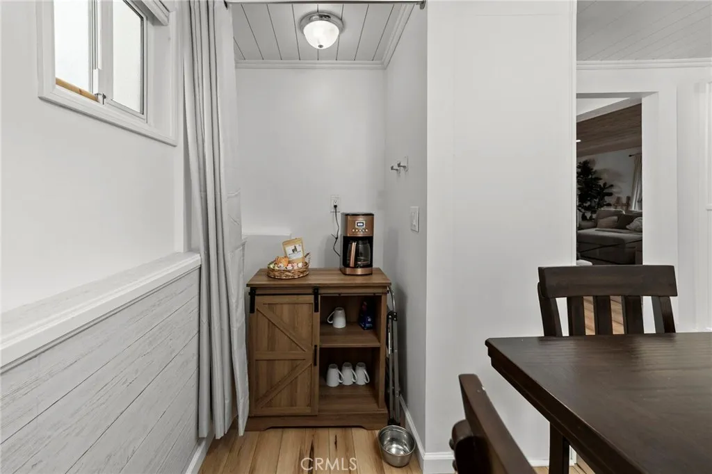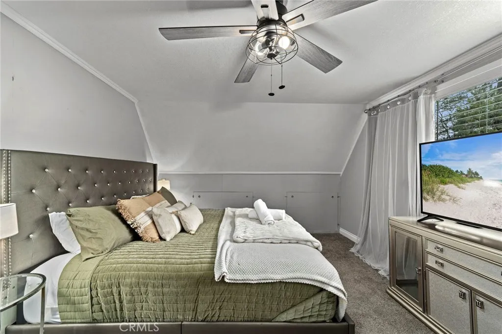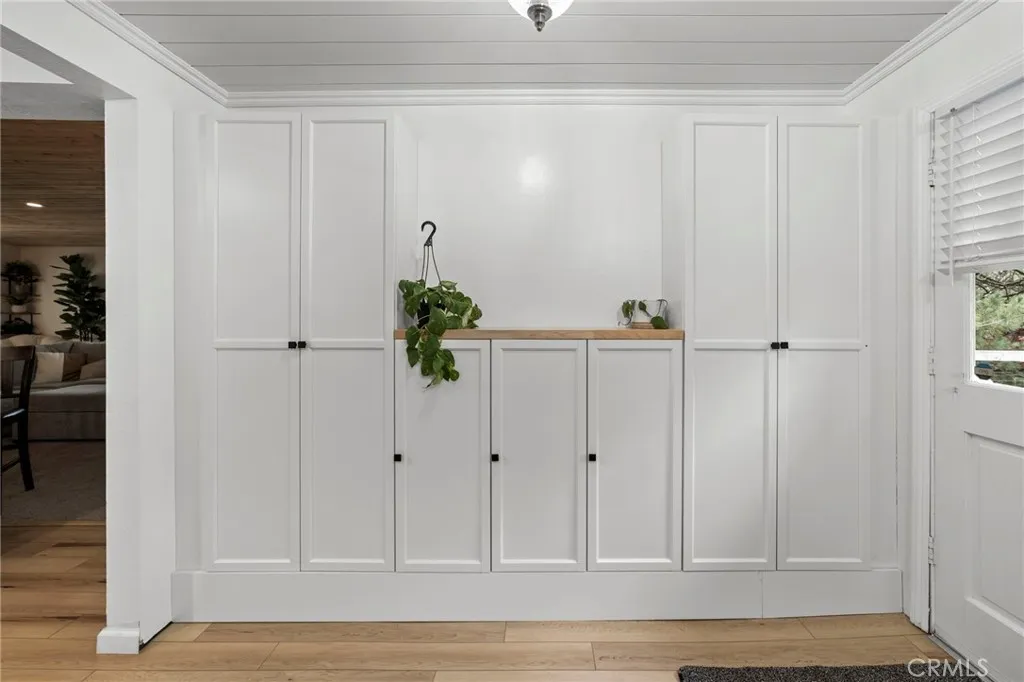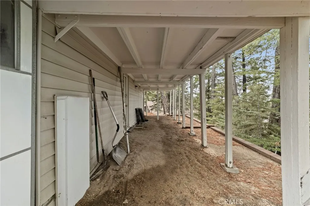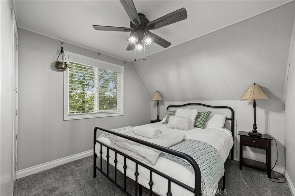 Tucked among the trees, this beautifully updated Lake Arrowhead cabin perfectly blends modern upgrades with timeless mountain charm. An oversized front deck welcomes you inan ideal space for relaxing, entertaining, or simply soaking in the peaceful forest surroundings. Inside, the bright and airy entryway features a wall of pantry and storage cabinets, along with a cozy breakfast nook offering space for a coffee bar. A newly installed window fills the home with abundant natural light. The renovated kitchen boasts quartz countertops, a peninsula with a custom butcher-block top, a stainless steel sink, and newer flooring. It opens seamlessly to the living room, where a stone fireplace, tongue-and-groove ceiling, recessed dimmable lighting, and a mini-split system create a warm and inviting gathering space. Sliding glass doors lead to the rear deck, complete with newer railings and serene treetop views. The first-floor bedroom feels like a private retreat, featuring built-in bookshelves, a sliding glass door with direct access to the rear deck, newer ceiling fixture, and updated blinds. A beautifully updated first-floor bathroom offers a walk-in shower. Upstairs, the primary bedroom provides a cozy escape, highlighted by a unique open-concept soaking tub set atop real hardwood floorsperfectly complementing the mountain setting. An additional bedroom, half bath, and ample storage complete the second level. Outside, newly renovated exterior steps lead to the backyard and build-up area, which includes laundry and generous space for additional storage. Situated on a quiet cul-de-s