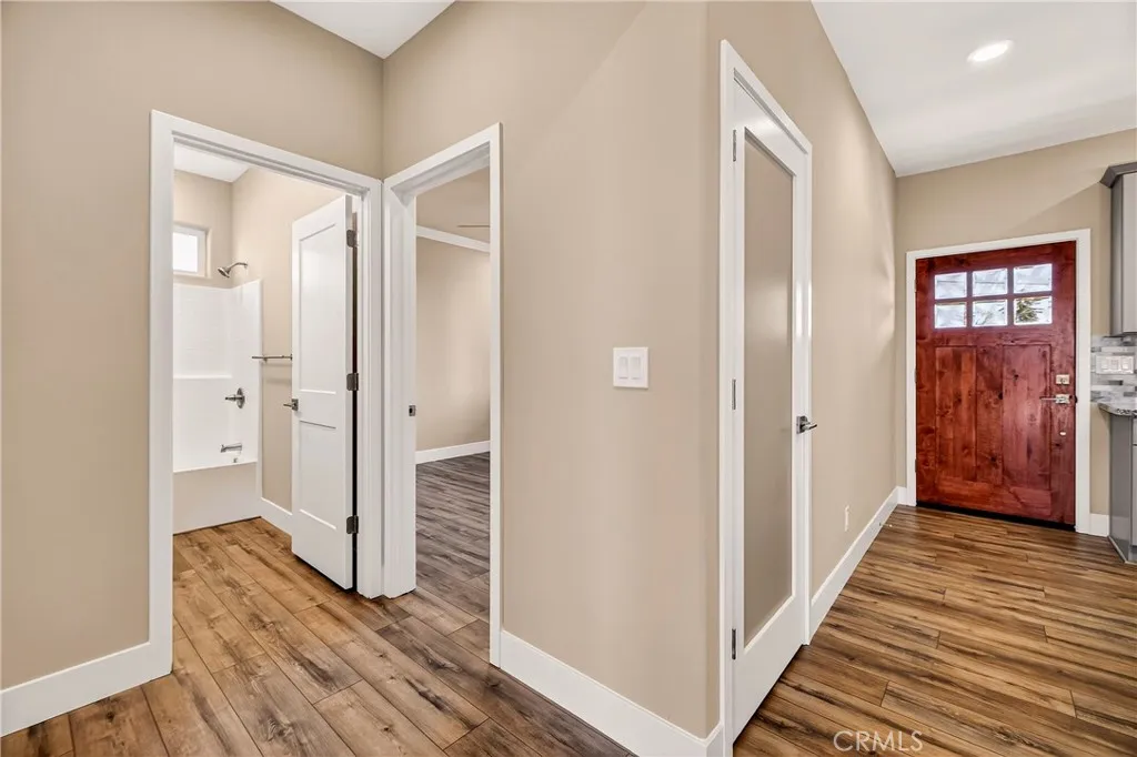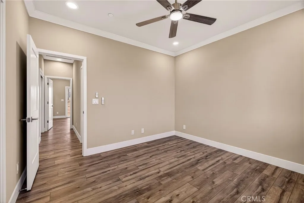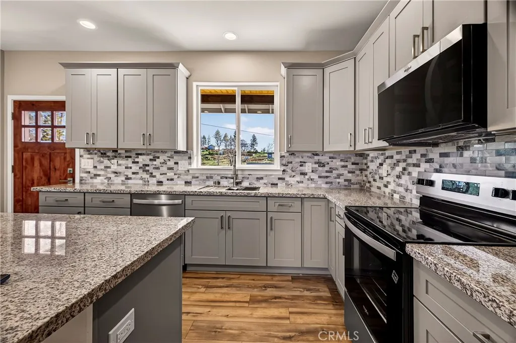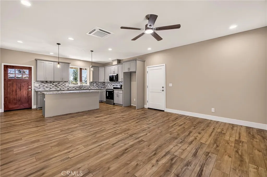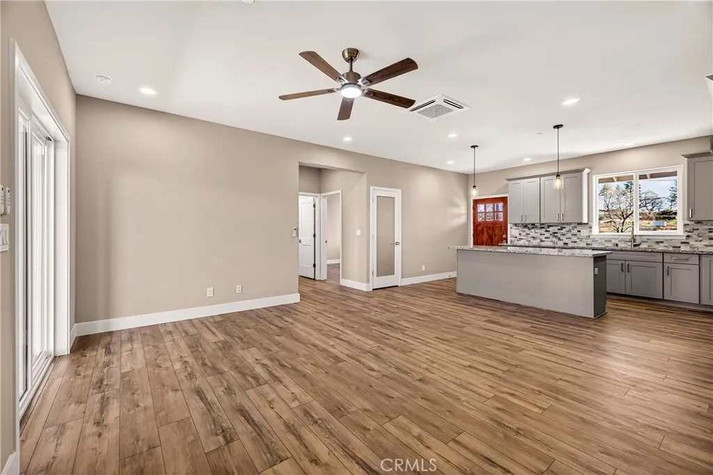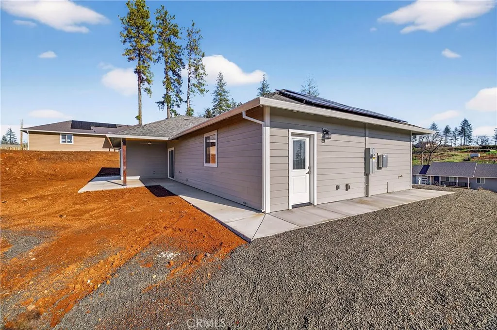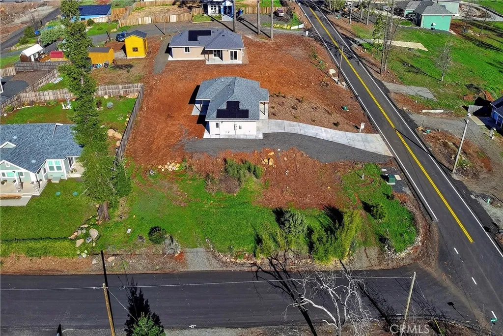 Fantastic Central Paradise location for this 2025 Custom Home, built by Frost Construction a long time Paradise builder. Current Insurance Quote $1,044.70 NO FAIR PLAN! The home offers Owned Solar 3.08 KW system, 7 panels with microinverters. Enjoy the proximity to the Paradise train park where on Wednesdays in the summer there is live music and activities. The .32 Acre lot offers space for Boat, Trailer or R.V. parking with electricity. Landscaped front yard on drip system. Boasting a generous 1,021 square feet of living space, this home features top-notch craftsmanship and modern amenities. Upon entering, you'll be greeted by a charming 96 square foot covered front porch with a craftsman-style front door and custom shutters. Step inside to discover an open floor plan that seamlessly connects the living room, kitchen, and dining area. The kitchen is a chef's dream with granite countertops, stainless steel appliances, recessed LED and pendant lighting, and a stylish island for added convenience. The primary bedroom is a serene retreat with crown molding, a slider leading to the covered patio, and a well-appointed en-suite bathroom featuring granite counters and a step-in shower. The guest bedroom also offers crown molding and access to a sleek guest bathroom with granite countertops and a tub/shower combination. The home features gorgeous Vinyl Plank flooring throughout. Outside, you'll find a spacious 114 square foot covered patio with recessed lighting and a ceiling fan, perfect for outdoor entertaining. Additionally, the oversized two-car garage, measuring 23'5" wide by