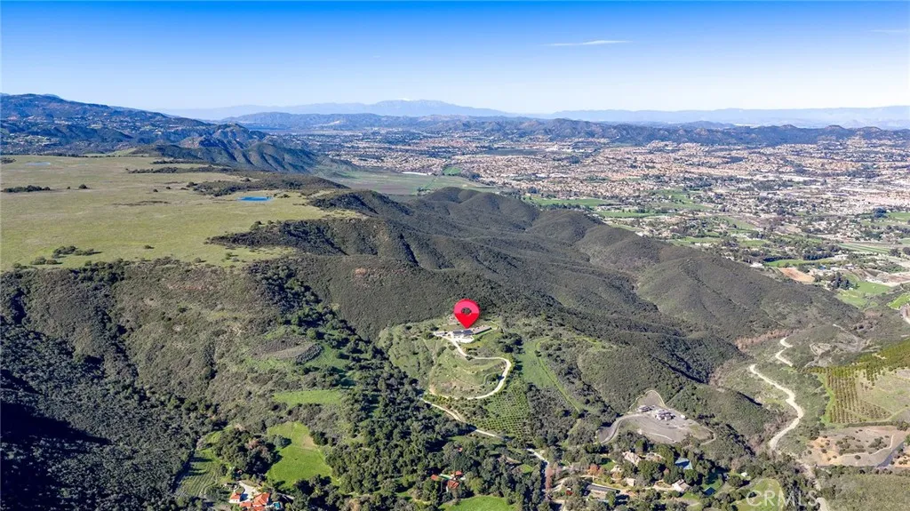 Nestled in the heart of Temeculas most coveted De Luz community, this extraordinary gated estate offers a rare combination of iconic panoramic mountain views, architectural scale, and exceptional future upside. Set on 10.7 acres of prime land, this is one of the largest residences in the area, designed for both luxurious living and long-term value appreciation.The main residence spans 7,245 sq ft, complemented by an additional approx. 3,000 sq ft indoor pool and patio retreata truly rare feature in De Luz. Soaring high ceilings anchor the kitchen, living areas, and two primary suites, creating an open, light-filled environment where nearly every room captures sweeping views of the mountains, valley, and city lights.This thoughtfully designed floor plan features 7 bedrooms and 6 bathrooms, including dual primary suites ideal for multi-generational living, extended guests, or executive-level privacy. Each secondary bedroom includes its own suite bath, enhancing comfort and flexibility. The gourmet kitchen is a centerpiece, showcasing an oversized island, premium custom cabinetry, and generous entertaining space seamlessly connected to the main living areas.The property also offers exceptional expansion and income potential: a detached 4-car garage, expansive flat parking accommodating 10+ vehicles and RV, and ADU conversion possibilitiespositioning this estate as a compelling value-add opportunity in one of De Luzs most scenic corridors. With no rear development, privacy and views are preserved.Just minutes from Old Town Temecula, renowned wineries, and major conveniences, th