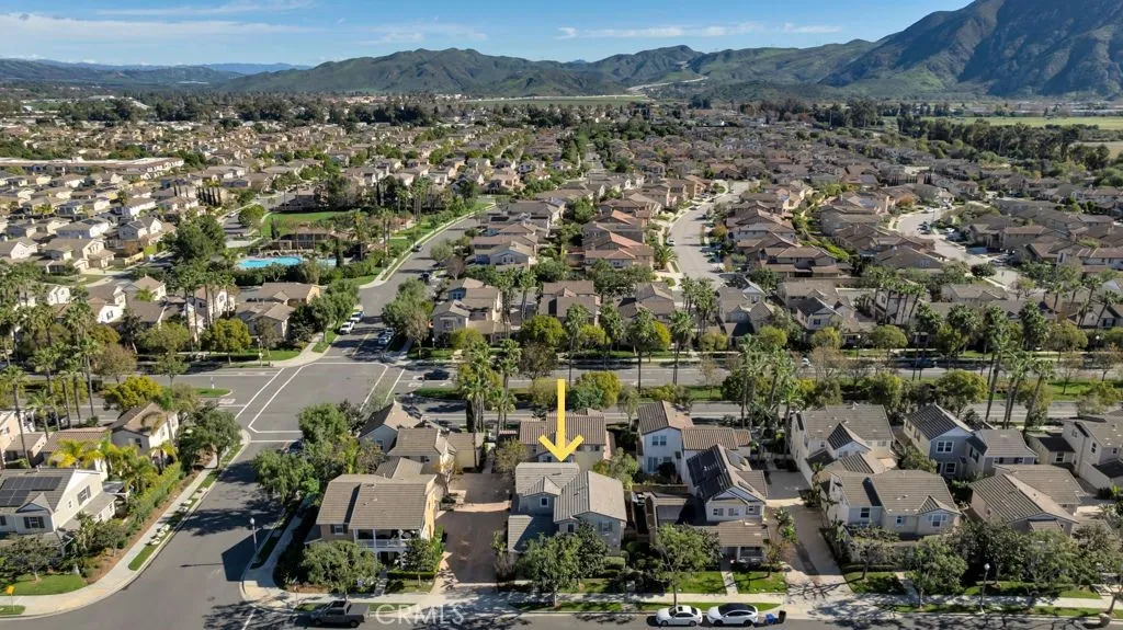 Nestled in the desirable Village at the Park community in Camarillo, this meticulously maintained home offers a comfortable layout, thoughtful upgrades, and the kind of everyday livability that truly makes a house feel like home. Upon entering, tile flooring flows throughout the main level, leading from the formal living room into the inviting family room. A cozy gas fireplace and built-in shelving create a welcoming space to relax or gather, while sliding doors open directly to the patio for easy indoor-outdoor living. The kitchen is both functional and inviting, featuring rich wood cabinetry, granite countertops, a gas cooktop, double ovens, a dishwasher, and bar-top seating, ideal for daily meals or casual entertaining. Upstairs, carpeted flooring leads to the spacious primary suite with a generous walk-in closet and an ensuite bathroom offering dual vanities, a soaking tub, a separate walk-in shower, and a private water closet. Two secondary bedrooms provide ample closet space and natural light and are complemented by a guest bathroom with dual sinks and a private water closet. The upstairs laundry room includes a utility sink for added convenience. Additional highlights include a downstairs powder bath, central air conditioning and heating, window shutters, a private patio with an adjacent storage shed, and a two-car garage offering both parking and storage. Beyond the home itself, Village at the Park is appreciated for its walkability, peaceful atmosphere, and thoughtfully maintained surroundings. The community features well-kept walking and bike paths, nearby parks,
