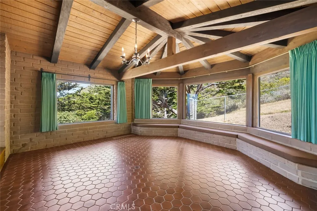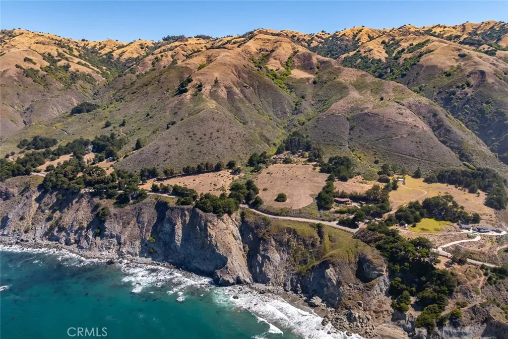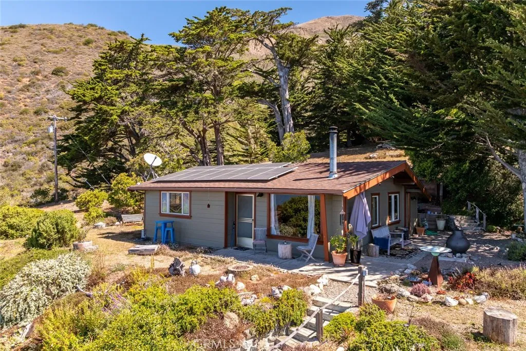 Located just north of the popular San Carpoforo Creek beach and 1/2 mile south of Ragged Point, 18844 Cabrillo Highway is a rare, 121 acre coastal retreat. This stunning, rural property overlooks the Pacific Ocean and is surrounded by the Los Padres National Forest, a stretch of California Coastline that is largely undeveloped. Two streams run through the property, and there is an abundance of natural vegetation, including California Coastal Sage, Chaparral & Oak Woodlands. There are 3 structures on the property. The primary home, built in 1973, is a single-level 3,159sf 3 bedroom, 3 bath plus indoor laundry, adobe brick house. The primary living areas have high, wood-beamed ceilings, brick walls, and tile flooring. There is a beautiful wood-burning fireplace in the living room plus built-in shelving and seating areas. Multiple windows offer views of the ocean, mountains and overall property. There are multiple patio settings and an oversized 2-car garage with additional storage. A dimensional composition shingle roof is newer and the source of heat and AC in the home includes mini-splits and radiant heat. The cozy guest cottage is approximately 745sf and features 2 bedrooms and 1 bath, a living area with a wood stove and picture window, kitchen and indoor laundry. A workshop/garage and fenced garden are close by. There are panoramic ocean and mountain views from both properties. Solar panels with Tesla batteries are installed on each home for independent, sustainable energy. There are 2 wells on the property. One well has an electric pump, and the other well runs off the w