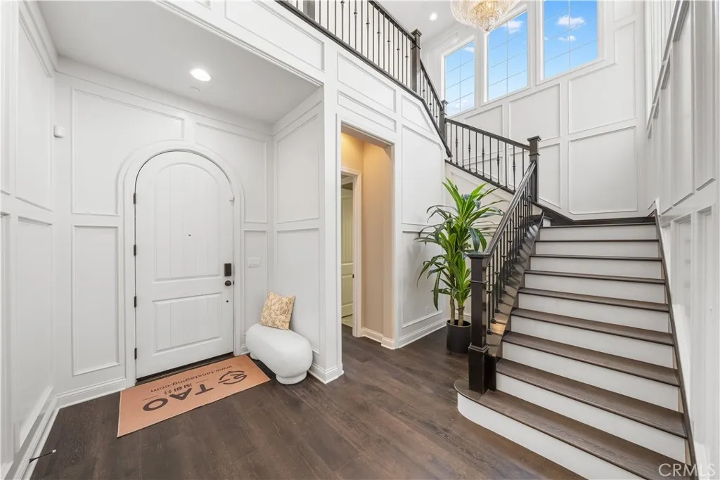 Luxury Residence in Prestigious Vila Borba features 24-hour security surveillance. Discover timeless sophistication with exquisite developer upgrades throughout. As you step through the grand entrance, soaring high ceilings and luxurious black walnut hardwood floors welcome you, while custom wood-paneled wainscoting adds a touch of timeless elegance. This home is a harmonious blend of modern luxury and thoughtful design, perfectly suited for gracious living and entertaining. The heart of the home is the chef-inspired dual A separate, enclosed Chinese-style kitchen and a spacious Western-style kitchen. a culinary sanctuary featuring a powerful commercial-grade wok/range hood for authentic Asian cooking, an expansive center island for effortless gatherings, stunning marble backsplash, and premium soft-close cabinetry that exudes sophistication.A versatile downstairs bedroom with full bath offers ideal guest accommodations or multigenerational living, complemented by a serene dedicated office/den. Ascend to the second level to find an additional loft/den perfect for a cozy retreat or home office, leading to the indulgent master suite a private sanctuary with expansive walk-in dual closets and a spa-inspired bathroom featuring a deep soaking tub, where tranquility awaits.Step outside to your own private paradise a breathtaking, landscaped double backyard oasis with cascading waterfall, lush bamboo groves, verdant lawns, and awe-inspiring panoramic views of the rolling Chino Hills landscape, creating a serene backdrop that changes beautifully with the seasons.Nestled in the c