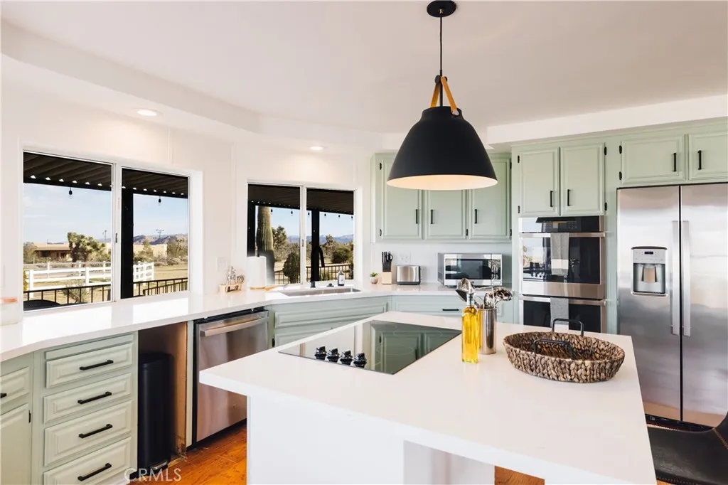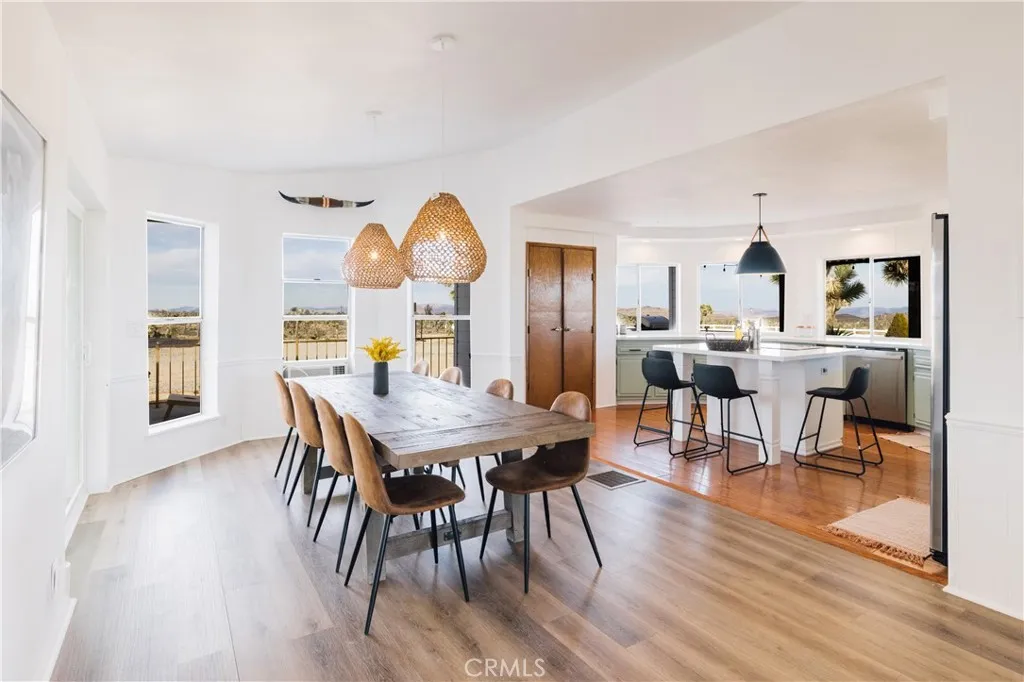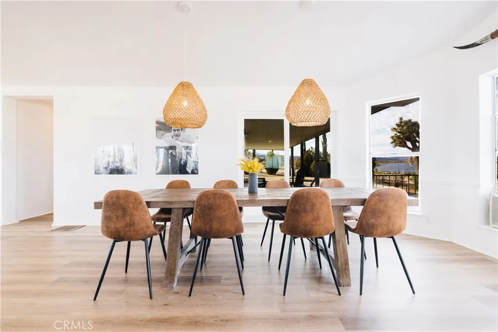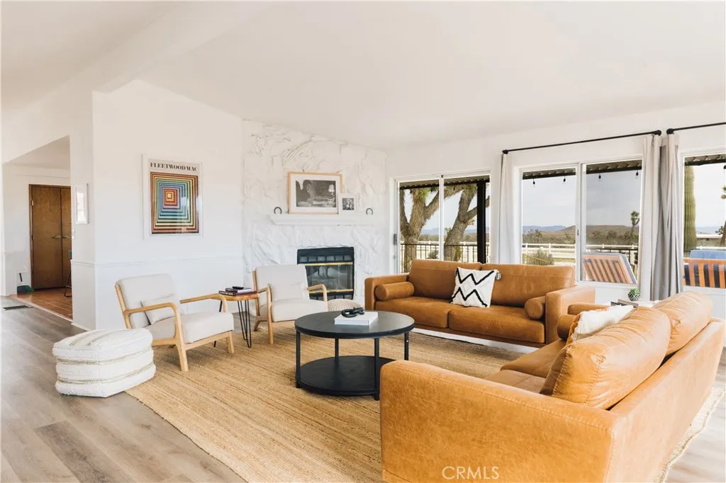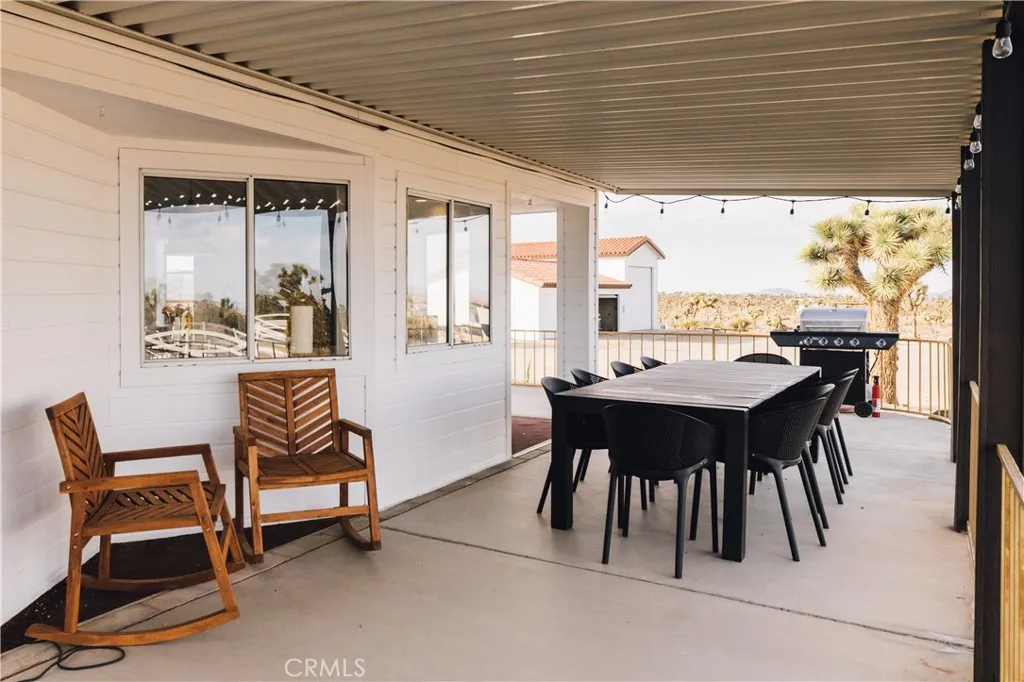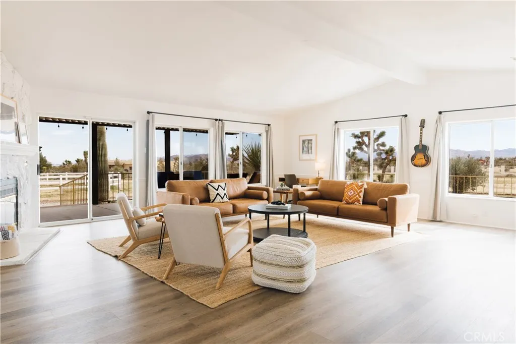Calling all cowboysheres your chance to live out your desert ranch dream! Crazy Heart Ranch blends rustic charm with modern comforts on 5 fully fenced acres, dotted with Joshua Trees and Saguaro cactus, and framed by sweeping mountain views into the Pipes Canyon corridor. This 3-bed, 2-bath fully furnished home is ideal for equestrian or farm living and makes for the most authentic equestrian Airbnb retreat. The open floor plan features a light-filled living area with fireplace, seamless flow to the wraparound porch that overlooks the riding arena and vast mountain views, and a kitchen that opens to dining and living for easy entertaining. Outdoor living defines the property, with multiple spaces designed for relaxation and gathering. A sprawling three-sided wraparound porch provides year-round reprievegrill and dine in the summer breeze, sip morning coffee while the desert awakens, or gather at dusk as the skies come alive with color. A jacuzzi, cowboy dipping spas, outdoor shower, and firepit set the stage for starlit evenings under the Hi-Deserts famed dark skies. Ride directly from the property into open desert trails, or simply watch the shifting light move across the surrounding mountains from your own private sanctuary. Equestrian facilities include a Western-style tack shed, two stalls, and a riding arena, while a 3-car garage plus 33 ft RV garage with hookups expand storage and flexibility. Upgrades throughout, central heat/AC, solar to offest electrical $320/mo. and thoughtful design ensure comfort in every season. The transferable solar contract includes NEM 2.0