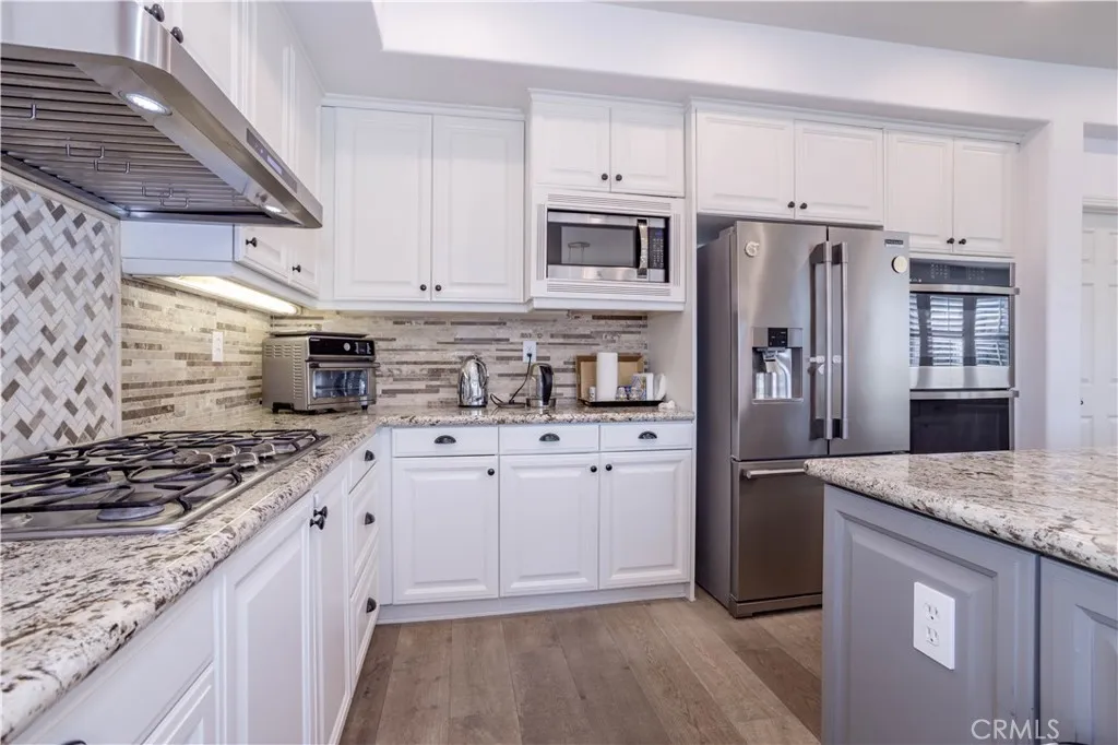 Presenting the most exclusive Silverthorne 6-bedroom and 4-bath estate nestled in the Northern Foothills of Simi Valleywhere refined artistry meets exceptional craftsmanship to create a truly breathtaking retreat. This exceptional residence blends modern sophistication with timeless elegance and features recessed lighting throughout, enhancing the homes bright and refined ambiance. Upon entry, youre welcomed into a thoughtfully curated interior offering two bedrooms on the main level, one featuring a walk-in closet, along with a full bathideal for guests, multigenerational living, or a private home office. The formal living room impresses with soaring cathedral ceilings and custom roller shades, flowing effortlessly into the dining room, adorned with bespoke lighting and plantation shutters. The gourmet kitchen is a chefs delight, showcasing custom cabinetry, granite countertops, and high-end stainless steel appliances, including a five-burner cooktop and double ovens. A spacious center island and charming breakfast nook overlook the serene backyard and scenic views, creating the perfect setting to start your day. The adjoining family room offers a warm and inviting atmosphere with a cozy fireplace and built-in media niche. A well-appointed laundry room adds everyday convenience with ample cabinetry and storage. Upstairs, youll find four generously sized bedrooms, including the luxurious primary suitea true private retreat featuring engineered wood flooring, dual walk-in closets, and a fully remodeled, spa-inspired primary bathroom. Each upstairs bedroom offers comfort, fle