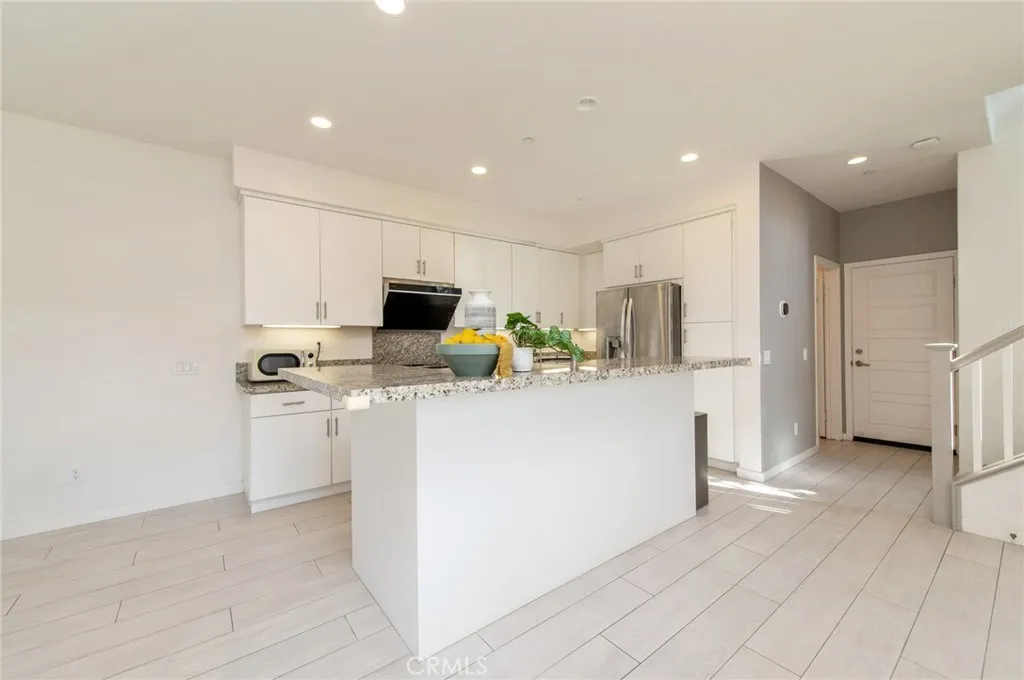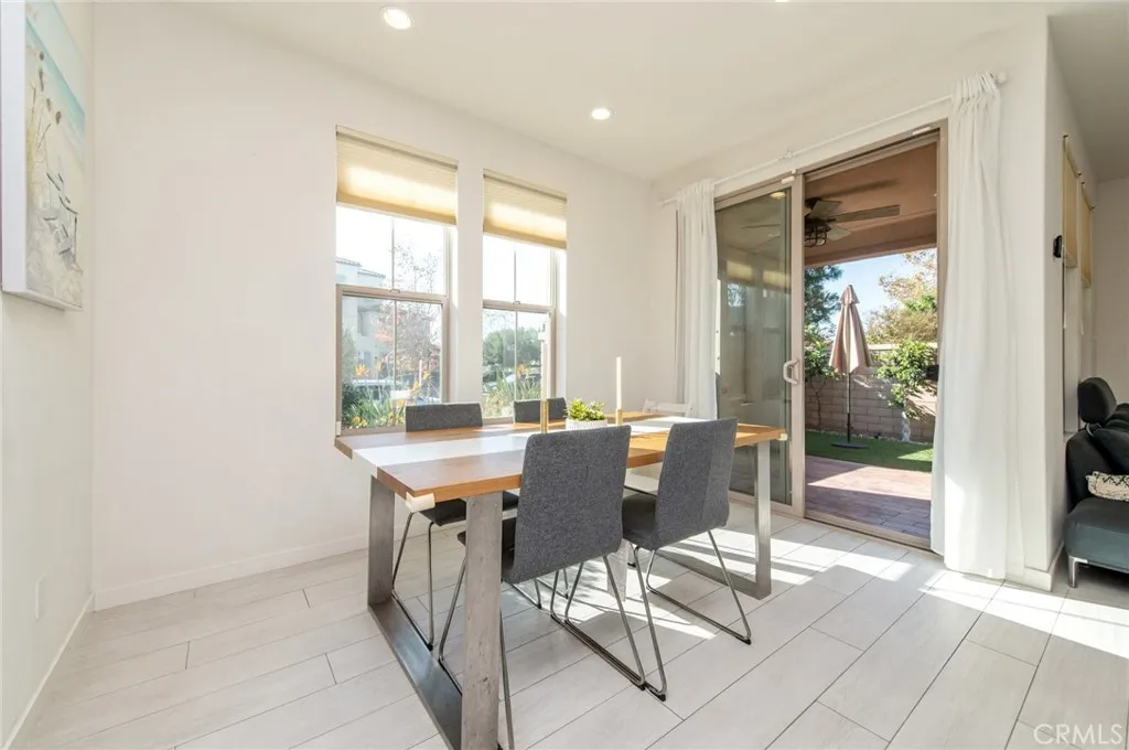This well-located end-unit residence is situated within the Baker Ranch community and offers a functional floor plan with a desirable corner location that provides added privacy and abundant natural light. The main level features an open-concept layout with neutral tile flooring throughout the primary living areas. The kitchen includes granite countertops, a center island with seating, stainless steel appliances, and ample cabinetry, and opens seamlessly to the living and dining areasideal for everyday living and entertaining. Sliding doors extend the living space outdoors to a private patio area designed for indoor-outdoor enjoyment, featuring a covered outdoor section, hardscape surfaces, and low-maintenance landscaping. The second level includes a versatile loft space, a conveniently located laundry area, and three bedrooms. The primary suite offers a comfortable retreat with a walk-in closet and an ensuite bathroom featuring dual vanities and a walk-in shower. An additional upper-level flexible space provides further versatility and may be used as a media room, office, exercise area, or other functional living space, depending on buyer needs. The home benefits from thoughtful layout planning and functional features, which may include multi-zone climate control, electric vehicle charging capability, garage functionality enhancements, and smart or security-related components. All features, systems, and equipment are subject to verification and are offered as-is, with details to be confirmed by the buyer through inspections and seller disclosures. Residents of Baker Ranch