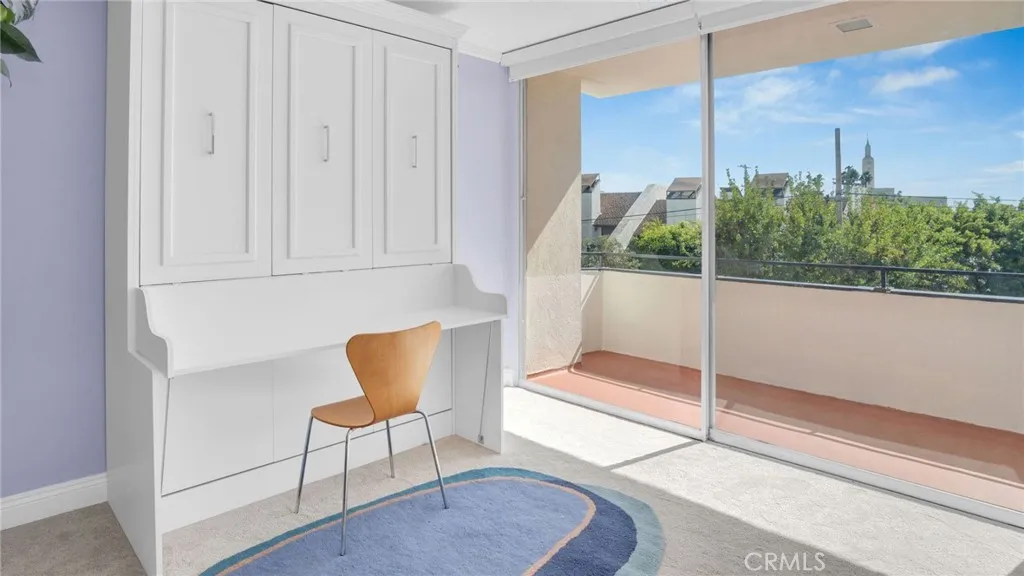 Welcome to this beautifully appointed Westwood view condo, the only available unit offering its own private balcony with sweeping panoramic views of one of Los Angeles most sought-after neighborhoods. This exclusive residence captures the essence of the Westwood lifestylerefined, vibrant, and centrally locatedwhile still offering a rare sense of tranquility. Inside, youll find a bright and spacious layout enhanced by fresh designer paint and brand-new plush carpeting throughout, creating a warm and inviting atmosphere from the moment you enter. The open living and dining areas are filled with natural light and flow seamlessly to the private balcony, making the space ideal for both everyday living and entertaining. The floor plan has been **thoughtfully enhanced with an additional room**, offering valuable flexibility for todays lifestyle. This space faces the street and enjoys abundant natural light, making it ideal for a guest room, home office, creative studio, or quiet retreat. A **brand-new Murphy bed** has been beautifully integrated into the living room near the sliding doors. The sleek white cabinet and built-in desk easily transform into a comfortable and stylish sleeping area, and **the Murphy bed is included with the property**, adding both function and modern design without sacrificing space. The kitchen and common areas are well laid out and ready for immediate enjoyment or your personal design touches. The laundry area is conveniently located in the hallway and includes a washer and dryer, making daily living effortless. Residents enjoy close proximity to some