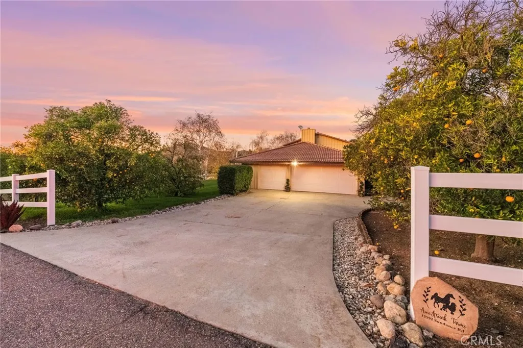 Welcome to this beautifully upgraded 5-bedroom, 4-bath home set on 2.64 acres in the highly sought-after community of Valley Center, California. Offering the perfect blend of modern finishes and country-style privacy, this property is ideal for those seeking space, comfort, and lifestyle freedomcomplete with no HOA, low taxes, fully paid-off solar, and two Tesla batteries that provide backup power during outages to keep the home running seamlessly. The manicured orange orchard and welcoming faade set the tone from the moment you arrive. Inside, a spacious front room provides the perfect setting for entertaining family and friends. The open, thoughtfully designed floor plan flows seamlessly, creating an inviting atmosphere for gatherings both indoors and out. The kitchen features warm honey-maple cabinetry paired with granite countertops and ample storage, while the adjacent formal dining area is generously sizedperfect for hosting memorable dinners and celebrations. The main residence offers four well-appointed bedrooms, each providing comfort and space. The first floor includes a bedroom and full bathroom with a shower, ideal for guests, multi-generational living, or a private suite. The primary retreat serves as a true sanctuary, complete with a luxurious en-suite bathroom designed for relaxation. Adding exceptional versatility, the property includes an attached guest house with one bedroom and one bathroomperfect for extended family, visiting guests, or added flexibility. Step outside to an expansive backyard that will impress any equestrian enthusiast, featuring a horse