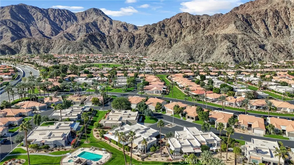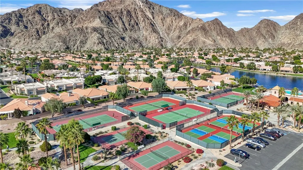 Welcome to Laguna de La Paz, a favorite gated community in La Quinta known for its lake, lush landscaping, and easygoing desert vibe. This 2-bedroom, 2-bath condo enjoys a great location away from traffic noise and right next to several amenities. Step outside, head straight to the pool, take a lap around the lake, or walk to the tennis and pickleball courts, the fitness center, and the clubhouse. The home offers a comfortable, open layout with plenty of natural light and a living space that feels welcoming the moment you walk in. The kitchen flows nicely into the dining and living areas, keeping everything connected and easy. The primary bedroom, which has its own spacious bathroom and lots of closet space, opens to a secluded patio with a pergola. The second bedroom and bath provide flexibility for guests, working from home, or weekend visitors. With a freshly painted interior new appliances, new carpet and custom made blinds, this home is ready for you to put your touch on it. Located on the only cul-de-sac in the community and well positioned to take advantage of gentle natural light without harsh direct sun, this home is a peaceful place to unwind in a beautifully maintained community that is close to golf, shopping, dining, and everything La Quinta has to offer.