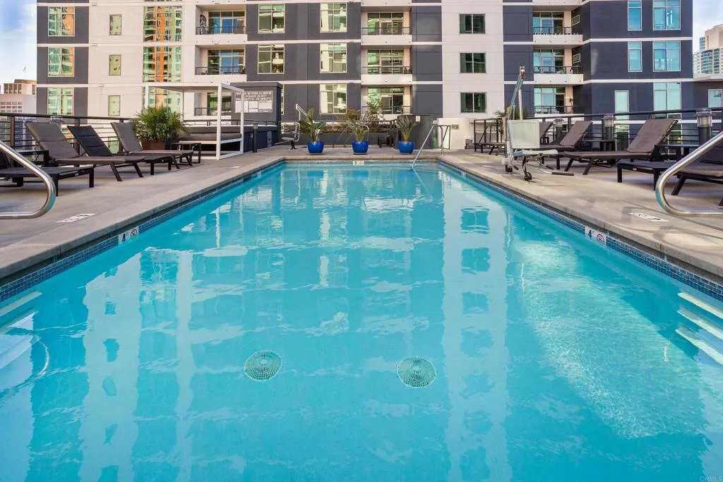 Light and bright 2-bedroom, 1-bath condo located in the heart of Little Italy, offering captivating city and peek-a-boo bay views. This exceptional residence features an open kitchen with granite countertops, recessed lighting, and a fresh neutral color palette that enhances the abundance of natural light throughout. Enjoy the convenience of a highly desirable 8th-floor location with direct access to the resort-style pool and BBQ area. The spacious primary bedroom includes a walk-in closet, while the private patio provides the perfect space to relax and take in the views. The building offers premium amenities including valet parking, pool and spa, and a fully equipped fitness center. Just steps from the Little Italy Farmers Market, world-class dining, shopping, and waterfront attractions, this stunning condo is a rare find in one of San Diegos most sought-after neighborhoods. ***VA ASSUMABLE LOAN!!! VA loan currentlyat 5.625%.