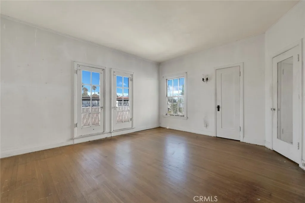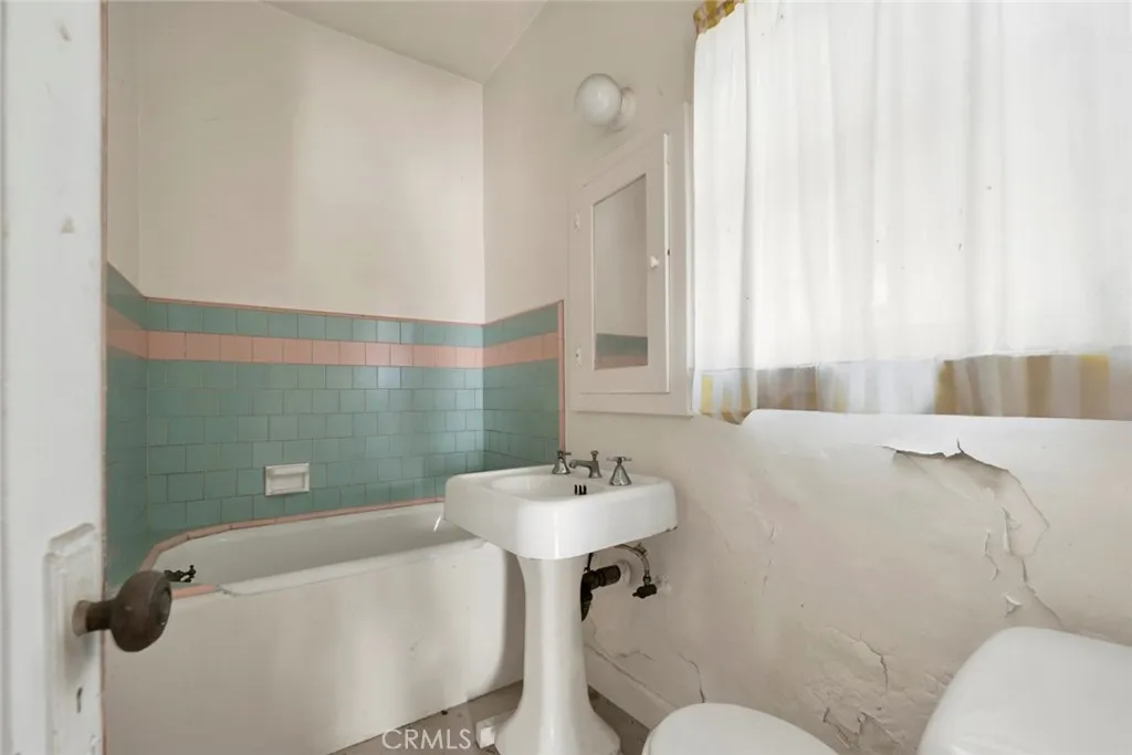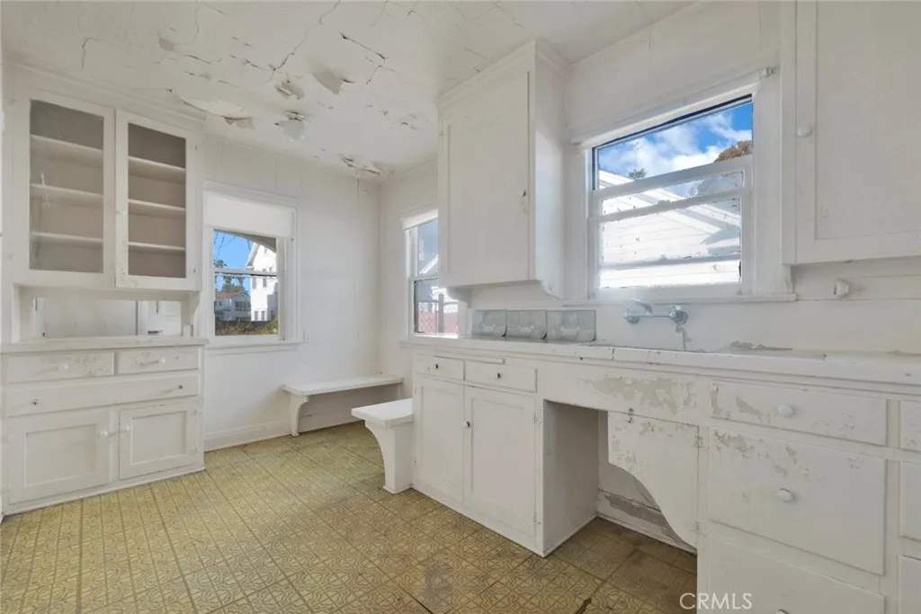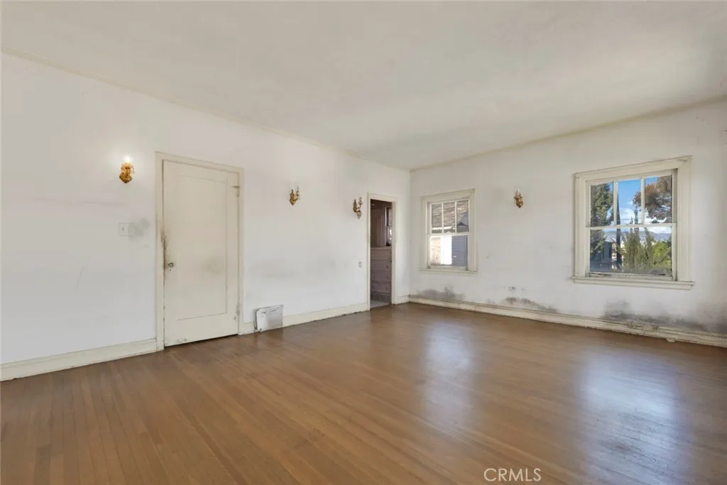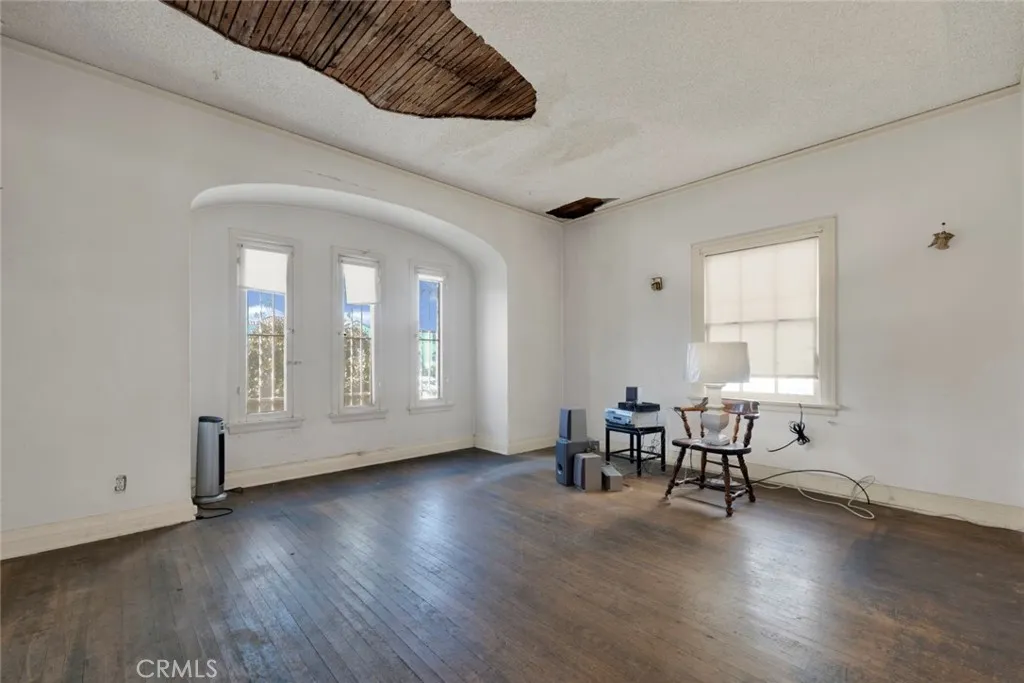 This grand Spanish Colonial Revival in coveted Country Club Park awaits a true visionary ready to restore it to its former splendor. Designed by notable 1920s female architect Anna C. Geck, who was responsible for many similar residences throughout Los Angeles and Orange Counties, the home reflects the elegance and craftsmanship of its era. Much of the original character remains intact, including vintage tile surrounding the fireplace, graceful arched windows, original hardwood floors, and many period light fixtures. The main level offers expansive formal living and dining rooms, a front parlor that may have originally served as two bedrooms, a kitchen with adjacent breakfast room, and a small bedroom and bath that once functioned as maids quarters. Upstairs, four generously sized bedrooms are served by two classic Jack-and-Jill bathrooms. At the rear of the property sits a detached one-bedroom, one-bath guest house of approximately 658 square feet, along with a three-car garage. Located within a Historic Preservation Overlay Zone, this property requires substantial renovation to its systems and structure, presenting a rare and meaningful opportunity to thoughtfully revive a significant architectural gem.