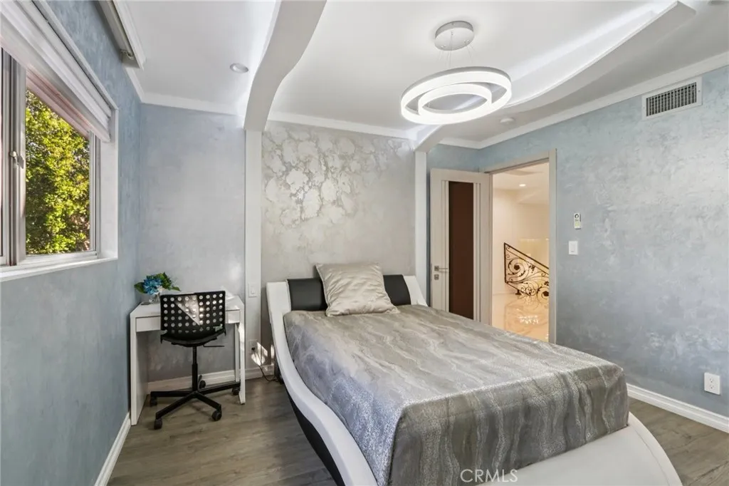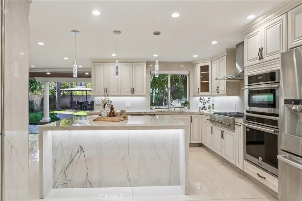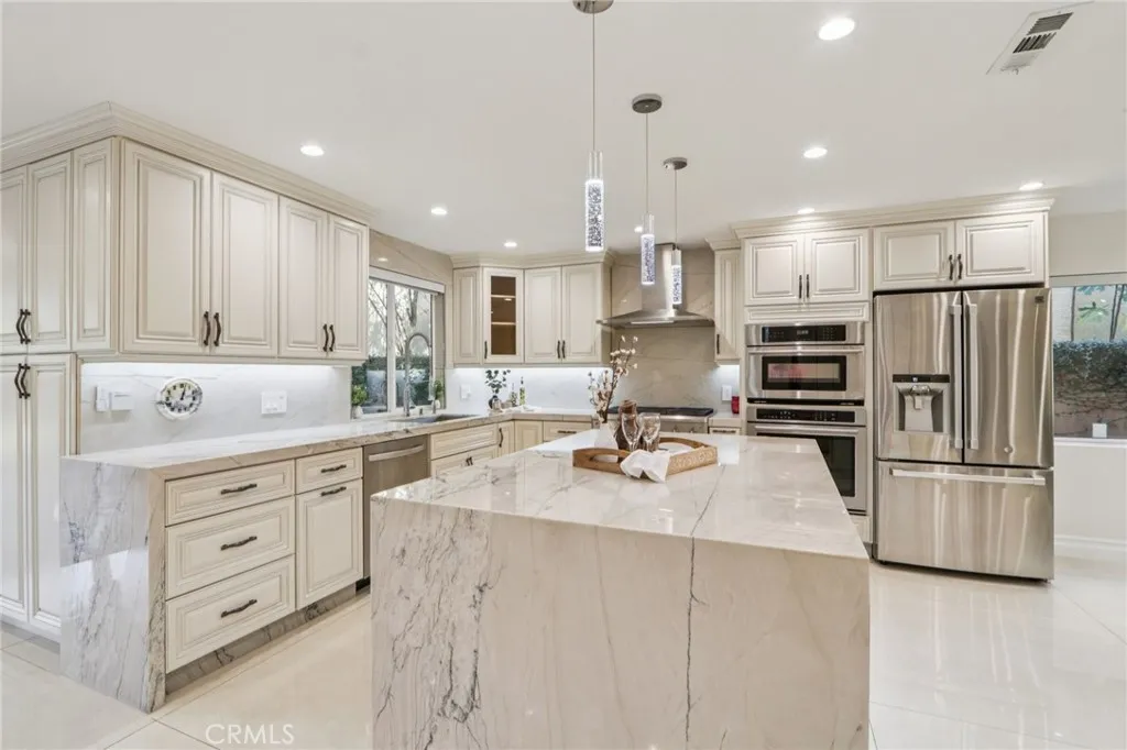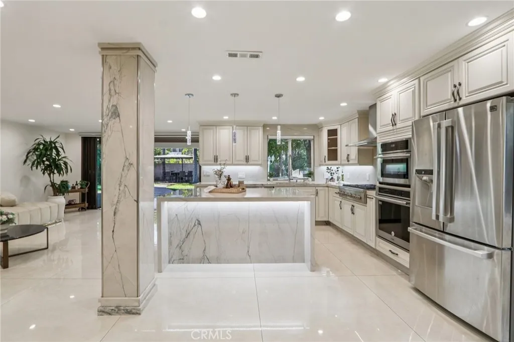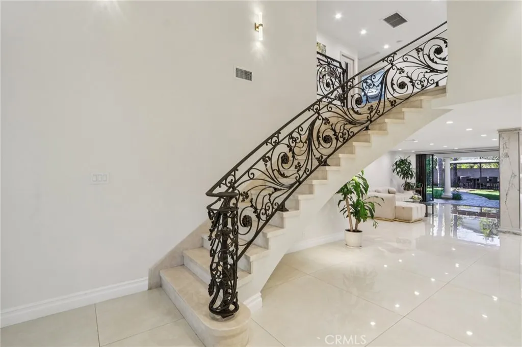 Stunning. Elegant. Immaculate. These words perfectly capture this newly remodeled Tarzana masterpiece, where luxury and craftsmanship converge. Enter through custom wrought-iron doors and step into an extraordinary residence showcasing over 2,600 square feet of impeccably designed living space with five bedrooms and four beautifully appointed bathrooms. The entertainers open floor plan is highlighted by a dramatic living room with soaring ceilings, seamlessly flowing into the dining area and a one-of-a-kind custom chefs kitchen. Featuring natural stone countertops, a generous center island, premium built-in stainless steel appliances, and bespoke finishes, this kitchen is both functional and striking. A cozy family room completes the main living space, perfect for everyday comfort or hosting guests. A grand marble staircase with custom iron railings leads to the luxurious primary suite, a true work of art. This private retreat features custom Italian paint, designer ceilings, a spacious walk-in closet with custom built-ins, and a en-suite bathroom with dual vanities and an oversized shower. Each additional bedroom is thoughtfully designed with unique, tasteful details and exceptional craftsmanship throughout. Step outside to a resort-style tropical backyard, ideal for entertaining. Enjoy a covered patio, built-in BBQ, gas fire pit, expansive grassy area, and a tranquil pond with a cascading waterfallyour own private oasis. Additional highlights include updated plumbing and electrical systems, custom interior doors, dual A/C units, a downstairs bedroom with a full bath, and
