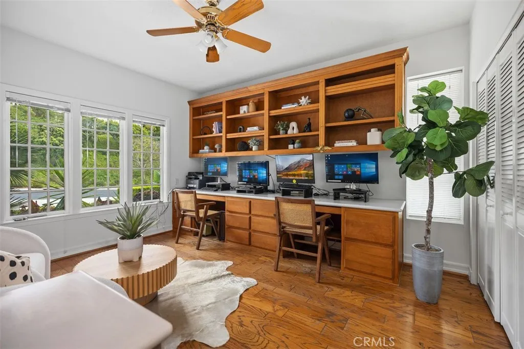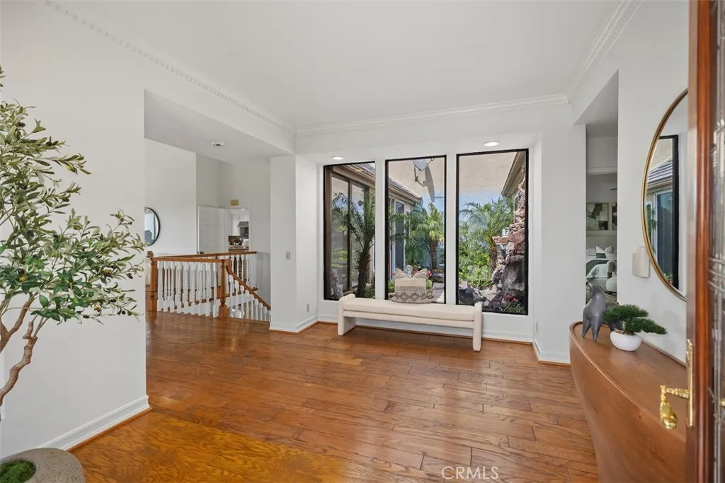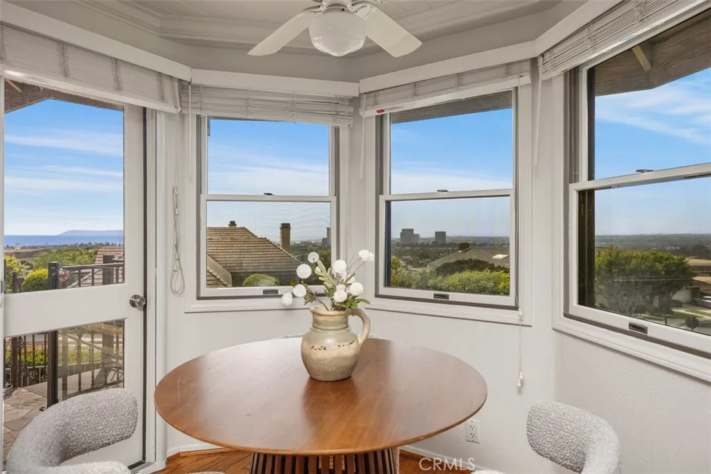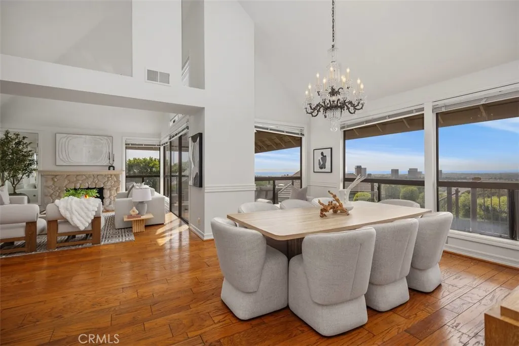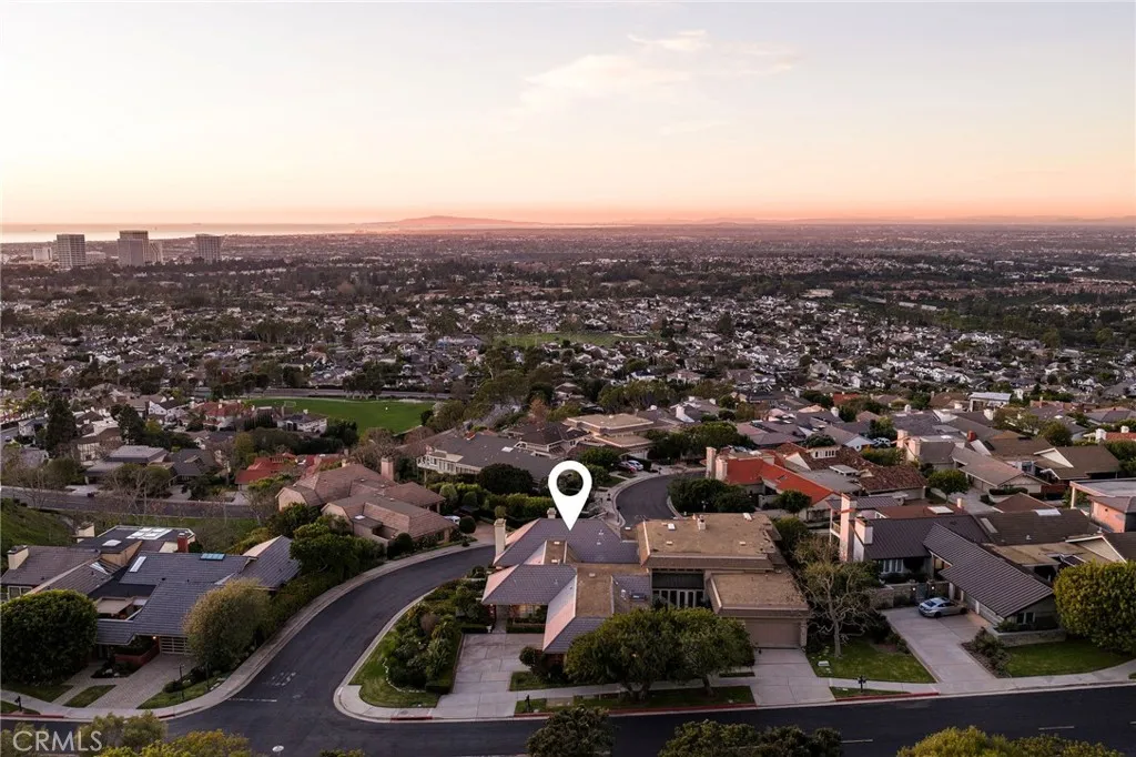 Showcasing breathtaking panoramic views of the Pacific Ocean, Catalina Island, and city lights by night, this exceptional residence represents the largest floor plan in the Harbor Ridge Estates subdivision, ideally situated on a premium corner lot within the prestigious guard-gated community of Harbor Ridge. The home features five bedrooms, with the fifth bedroom ideally suited for use as a private office, and a primary suite conveniently located on the main level, offering an ideal layout for both comfort and flexibility. Expansive windows throughout the residence frame the stunning vistas and fill the interiors with natural light. The chefs kitchen is equipped with a built-in refrigerator and high-end Viking stove, thoughtfully designed for both everyday living and entertaining. Spacious living and dining areas flow seamlessly, maximizing functionality while highlighting the homes elevated setting. Additional highlights include a three-car garage, generous storage, and the privacy and security that define this sought-after Newport Beach enclave. Residents enjoy close proximity to world-class beaches, harbor access, fine dining, and premier shopping. A rare opportunity to own a view-oriented home of this scale in one of Southern Californias most exclusive communities. The house lives like a single story, with the master bedroom, an offcice/second bedroom, 3 car garage, laundry, kitchen and the living room all on the main level.