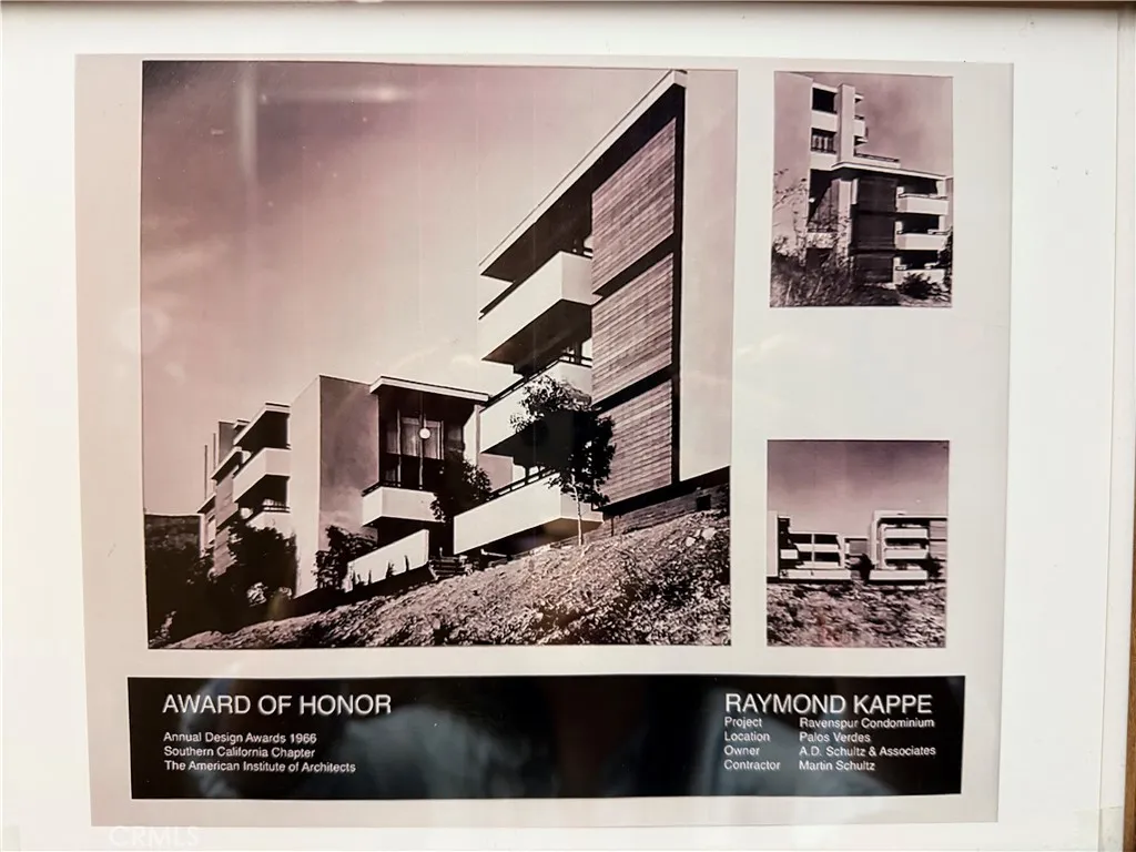 Designed by renowned architect Ray Kappe, this architecturally significant, townhome-style residence is part of an award-winning building recognized with an Award of Honor at the 1966 Annual Design Awards by the American Institute of Architects. The multi-level layout offers a rare blend of volume, light, and flexibility, with vaulted ceilings, defined living spaces, and modern updates throughout. The entry level features a spacious living room with balcony access and a versatile bedroom ideal for an office, den, or guest space with an attached bath & shower. The remodeled kitchen includes stone countertops, ample cabinetry, and opens to a large private patioperfect for indoor-outdoor living. Upstairs are three bedrooms, including a primary suite with updated bath and walk-in closet, plus two additional bedrooms with custom closets and full bath. Additional highlights include abundant storage, lots of private garage storage, and two side-by-side parking spaces. Conveniently located near shopping, dining, entertainment, Peninsula High School, and just minutes from the coast and Terranea Resort. HOA includes building insurance, maintenance, cleaning, pool, landscaping, trash and water.