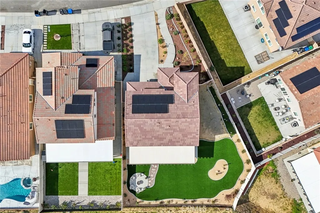 Welcome to The Fairway Community, where you can experience modern resort-style living at its finest. This breathtaking premium corner lot home sits on an expansive 7,815 sq. ft. lot overlooking The Legends GOLF COURSE with stunning MOUNTAIN VIEWSa rare find in todays competitive real estate market. Properties in this sought-after neighborhood consistently trend above average for both appreciation and desirability, making this an exceptional investment opportunity as well as a dream residence. The exterior features self-maintaining landscaping, including turf, decorative rocks, vinyl fencing, and drought-tolerant plantings, ensuring both excellent curb appeal and easy upkeep. The outdoor space is perfect for year-round entertaining, featuring an Alumawood patio cover with recessed lighting, ceiling fans, TV, and a dedicated BBQ and dining areaideal for hosting gatherings or relaxing with loved ones while enjoying the scenic backdrop. Inside, youll find a bright, open 2,239 sq. ft. floor plan with four spacious bedrooms and three full bathrooms. A convenient main-floor bedroom and bath provide an ideal space for guests or multi-generational living. The chefs kitchen is a showstopper, featuring white cabinetry, stainless steel appliances, quartz countertops, and a large island with designer pendant lighting and extra seating. Upstairs, a large loft offers flexible additional living space, while a well-appointed laundry room with extra storage adds everyday convenience. The spacious master suite offers picturesque views, a large walk-in closet, and a luxurious bathroom featurin