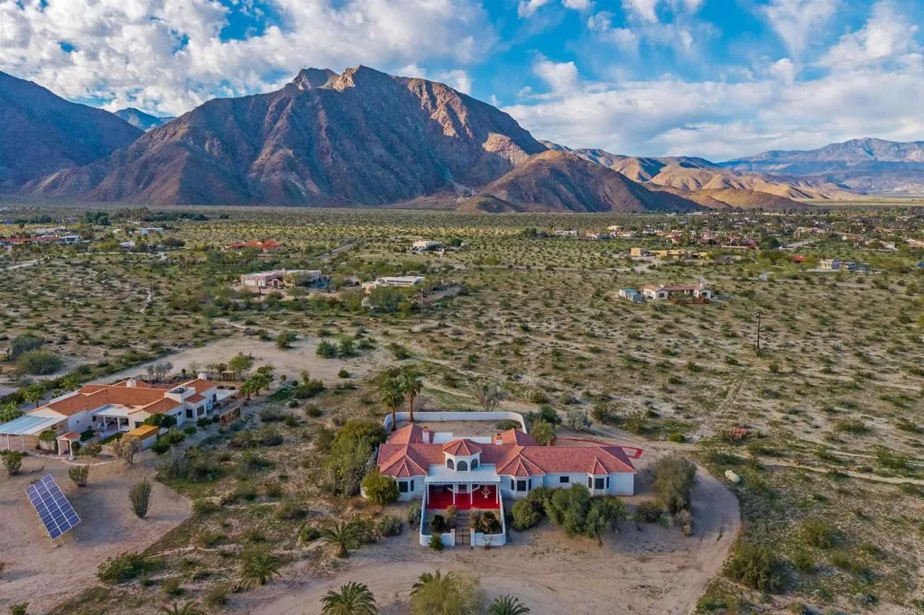 Spectacular views and nestled against the breathtaking Indian Head Mountain in one of the most desirable residential areas of Borrego Springs, this custom-built home offers refined desert living at its best. Spanning 2,565 square feet, this luxurious 3-bedroom, 2.5-bath home combines modern amenities with timeless charm. Situated on a sprawling 2.5-acre lot, theres ample room to create your own private oasis, including space for a pool with utilities. Upon entering through the walled front courtyard, youre greeted by soaring 10' ceilings and elegant 8' doors that create an open, spacious feel. A formal entry leads to the living and family rooms, where a two-sided propane fireplace exudes warmth and comfort. The chefs kitchen is a culinary delight, featuring a Monogram built-in refrigerator, propane stove, Bosch dishwasher, and a walk-in pantry. The primary suite boasts a fireplace, a luxurious en-suite with a jacuzzi tub, and beautiful desert views. Additional highlights include two HVAC systems with WiFi controls, a laundry room conveniently located near the kitchen, an oversized attached two-car garage, and a walled back patio with a fire pit for private outdoor gatherings. Landscaping is on automatic irrigation, ensuring easy maintenance. Borrego Springs offers a serene lifestyle, where stargazing, hiking, and outdoor adventures abound. As an International Dark Sky Community surrounded by the stunning Anza-Borrego Desert State Park, this peaceful village promises a truly unique desert retreat. Discover the unmatched beauty and tranquility of Borrego Springsyour desert ha