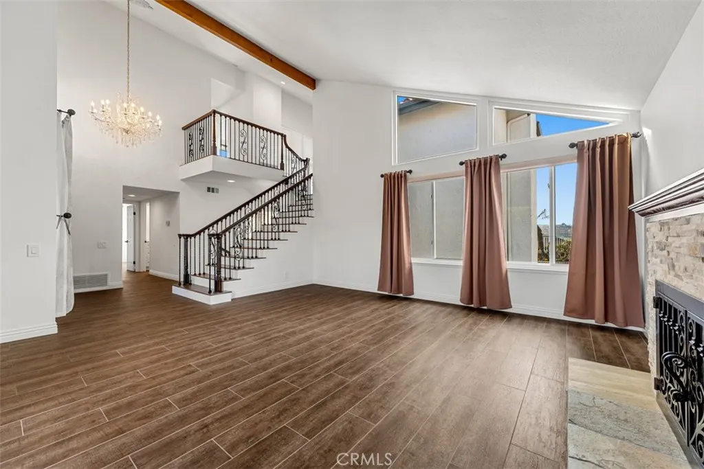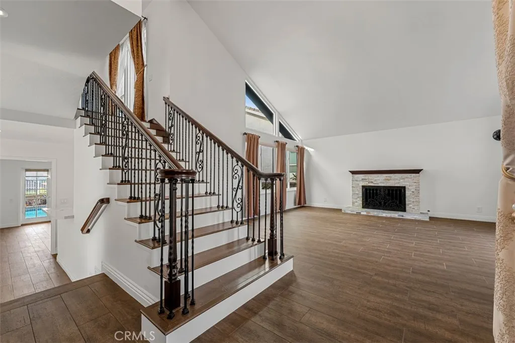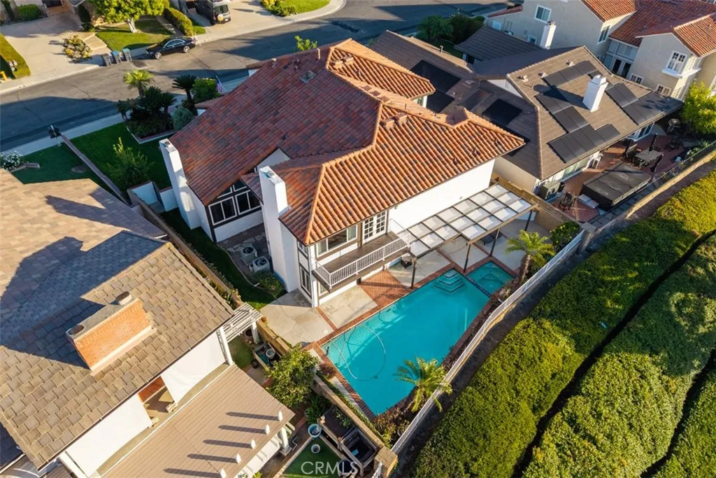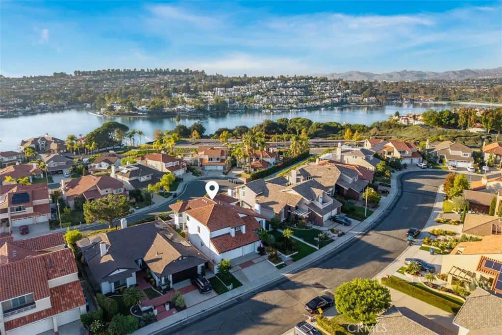 Beautiful mediterranean home over looking Lake Mission Viejo. Home is completely turn key. The exterior stucco with red tile roof and landscaping welcomes you into a home on a hillside with plenty of character with natural materials. Expansive windows with views, stone fireplaces, stunning staircase, high end kitchen, breakfast area, formal living room, wet bar, dining room, family room, separate large bonus/media room, laundry room, first floor bedroom, vaulted ceilings, master bedroom with balcony and view of the lake and mountains. The back yard with sweeping views of the lake, fountain, pool and spa. Three car garage. Access to private beach.