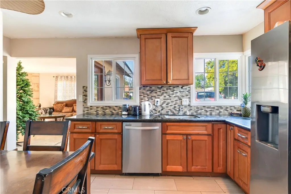Welcome to this charming Riverside home featuring 3 bedrooms and 2 bathrooms, each thoughtfully designed for comfort and privacy. The primary bedroom and living room both offer direct access to the backyard, creating a seamless indoor-outdoor flow. The living room provides ample space for entertaining and everyday living. The home includes granite countertops and tile flooring, with elegant travertine tile highlighting the living room, fireplace, and patio area. Step outside to a private backyard designed for entertaining, featuring a sparkling pool, bar, and spacious patioperfect for relaxing or hosting gatherings. Conveniently located near California Baptist University, as well as shopping, dining, parks, and schools. This home combines comfortable living with a prime Riverside location.