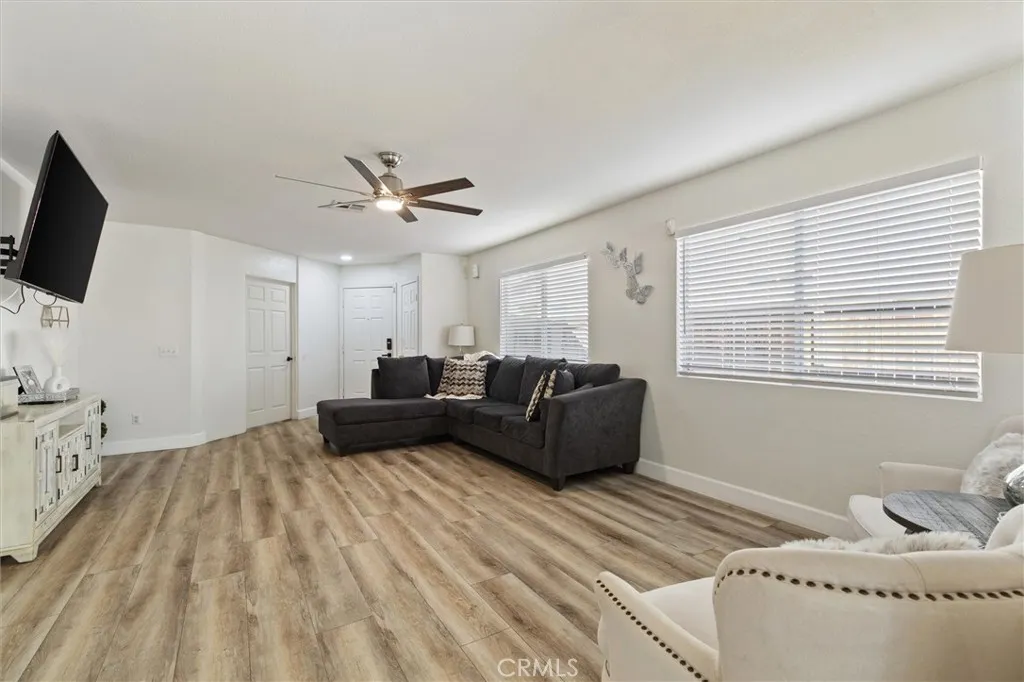 Beautiful single-story home located on a quiet cul-de-sac in the desirable Moreno Valley Ranch community. This 4-bedroom, 2 bath residence offers 1,772 sq. ft. of open-concept living space featuring a spacious livng and dining area with a cozy fireplace. The open kitchen is ideal fo entertaning and everyday livng. The primary bedroom includes a wal-in closet and a private en-suite bathroom. additional highlights include an indoor laundry room with direct access to the attached two-car garage, abundant natural light throughout, and a well-maintained yard with fruit trees. Conveniently loated near shopping, dining, parks, school, Moreno Valley College, hospitals, and major freeways. The Moreno Valley Ranch HOA provides access to a gym, gated park with BBQ areas basketball courts, a lake, swimming pool, open grass fields, and a playground.