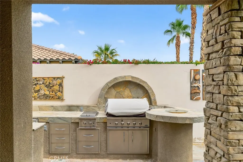 Attention Vacation Home Investors! The ultimate desert getaway plus high income producing property in the exclusive community of "The Montage at Santa Rosa." Your opportunity to own an amazing vacation home that pays for itself and provides income. Over 3,700 square feet of living space includes a primary bedroom and spa quality bathroom retreat; four other bedrooms with three full baths, including a private casita. Resort style backyard boasts a huge pool with waterfalls, a spa, a built in bar b que station, firepit, outdoor fireplace, putting green, water features/ fountains, all on a large lot with over 13,000 square feet. The community embraces short term rentals to accommodate the many events and functions now happening in the Coachella Valley. Expansive three car garage with incredible storage cabinet space. The gated courtyard leading to the entry is very desirable for privacy. A 6th bedroom is possible enclosing the original office space. Stainless steel appliances, kitchen breakfast bar built into the island, open to the family room with built ins, hearth seating and fireplace. Recessed lighting, surround sound system throughout, ceiling fans, zone heating and cooling, too many amenities to list. This is a great value for the square footage! Just minutes away from Coachella, Stagecoach and the Polo Grounds. Make an appointment to see it today!