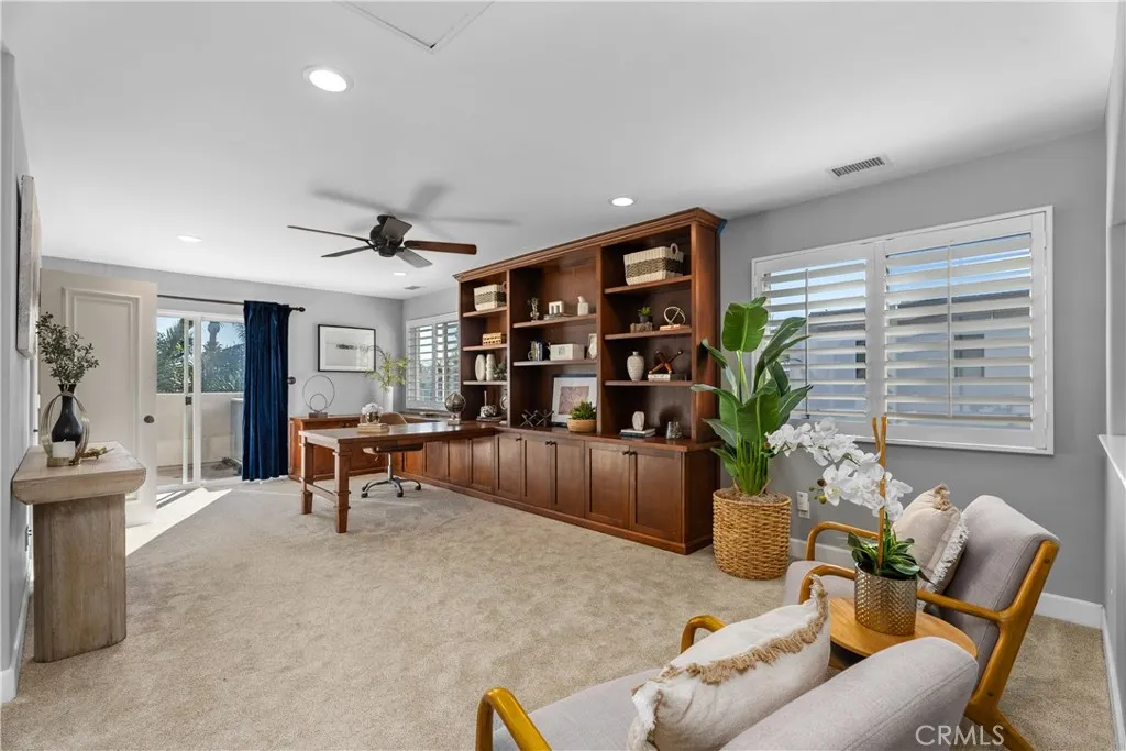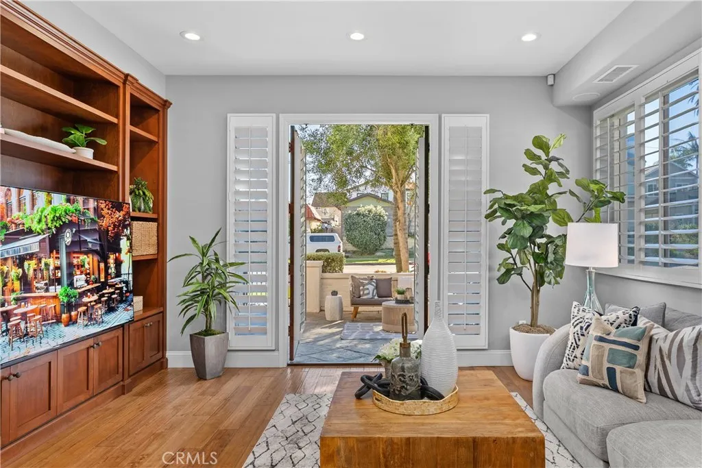 BACK ON THE MARKET!!! Gorgeous three-story beachside residence located blocks from the ocean and minutes from downtown Huntington Beach, offering convenient access to the Pier, Main Street dining, shopping, and entertainment. This beautifully designed home features 3 bedrooms, 3 full bathrooms, and 2 powder rooms with a spacious layout that blends modern finishes and coastal charm. The first level offers new hardwood floors with 9+ foot ceilings, abundant natural light, plantation shutters, and French doors opening to a private landscaped front patio, creating seamless indoor-outdoor living. The gourmet kitchen is appointed with a soapstone island, Calacatta marble countertops, SubZero and Viking stainless steel appliances, and a wine cooler, complemented by an elegant dining area and breakfast nook with bay window overlooking a side patio ideal for outdoor dining. First-floor amenities include a powder bathroom, laundry room, and direct access to the garage. The home is equipped with whole house water softening, app-accessible smart features including Lutron autonomous lighting, MyQ garage entry access, and central AC with Nest equipment for enhanced convenience and efficiency. The second level features a spacious family room with a dramatic double-height ceiling, fireplace, and expansive windows, along with a primary suite offering dual closets including a walk-in, a spa-style bathroom with jetted tub and separate shower, and French doors leading to a private balcony. Secondary bedrooms share a Jack-and-Jill bathroom, with an additional separate powder bathroom located in