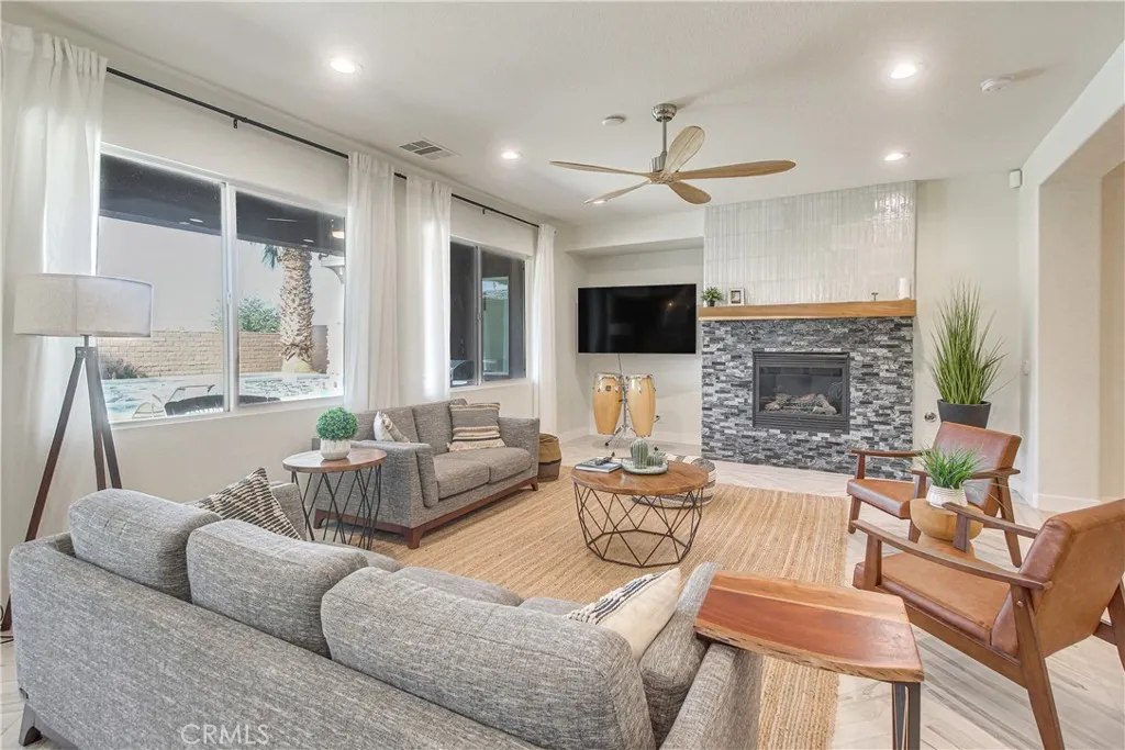 Welcome to 42681 Dell Lago Court, located in the desirable Terra Lago community in Indio, a beautifully remodeled and thoughtfully designed home that offers both exceptional comfort and outstanding income potential. This 3 bedrooms, 2 bathrooms residence features an open and airy floor plan that seamlessly connects the main living areas, creating a bright and welcoming space ideal for everyday living and entertaining. The home also includes a versatile bonus office area, perfect for a home office or additional workspace. The chefs kitchen is a true highlight, offering a spacious layout with a large center island, ample cabinetry, and generous counter space, making it a dream for cooking, hosting, and gathering with family or guests. The primary suite is a private retreat, complete with its own luxurious bathroom featuring a double vanity, a separate soaking tub, and a walk-in shower, providing both comfort and functionality. Step outside to your private backyard oasis, where a sparkling pool and relaxing jacuzzi invite you to enjoy the desert lifestyle year-round. Currently operating as a highly successful active Airbnb, this property is booked most of the year and showcases an outstanding history of strong and consistent rental performance. Whether you are looking for a primary residence, a vacation home, or a turnkey investment opportunity, this exceptional property offers the perfect blend of style, space, and proven income potential in one of Indios most sought-after communities.