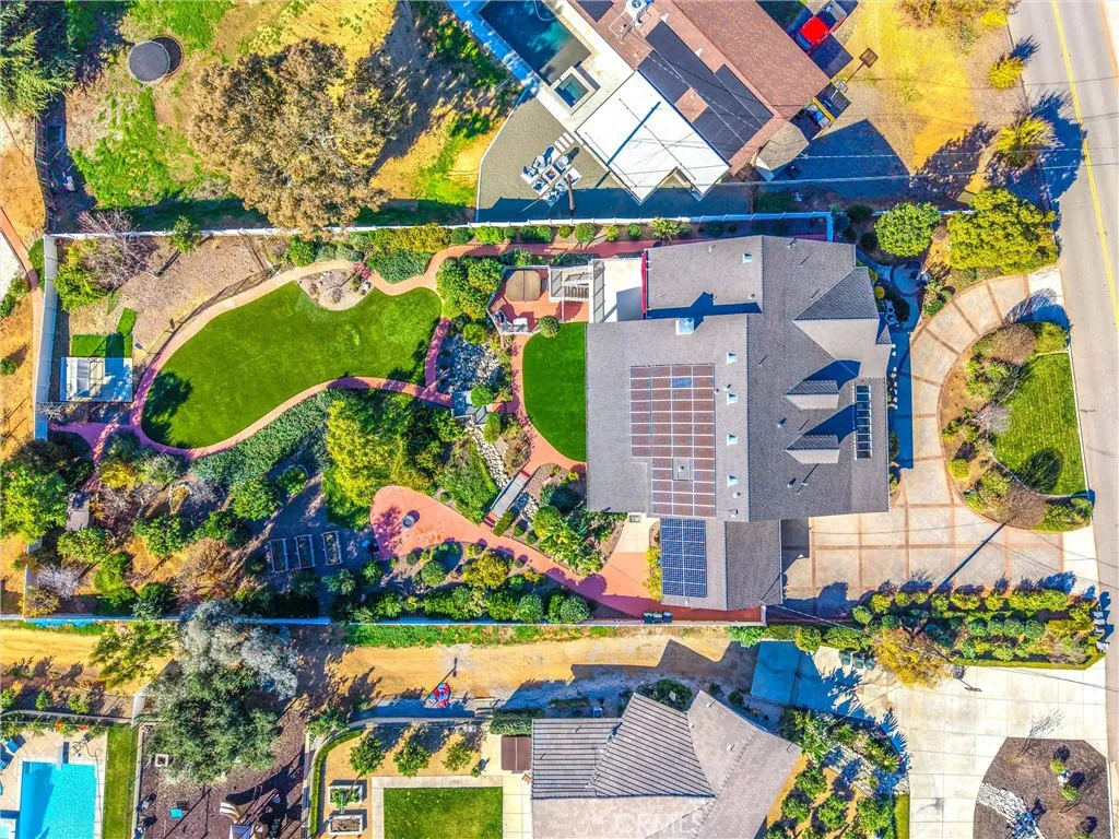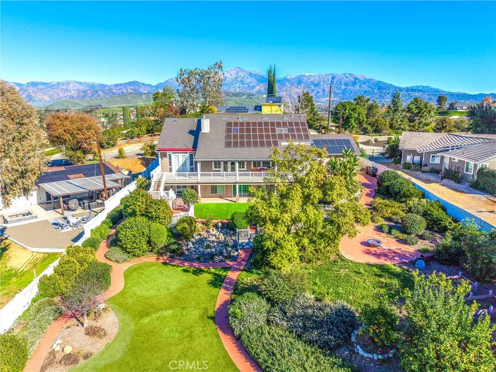 Located in the desirable hills of South Redlands, this spacious residence offers a unique blend of comfort, privacy, and exceptional outdoor living. The moment you step into the backyard, you are surrounded by an impressive collection of mature fruit trees including lemon, avocado, apple, cherry, peach, nectarine, orange, and fig, creating a peaceful setting that feels like your own private orchard. The backyard is one of the homes standout features, offering beautiful landscaping, multiple lounging and entertaining areas, and plenty of room for a future pool. Sunset views from the back porch are unforgettable, the perfect place to unwind while taking in the expansive yard and serene surroundings. Inside, the open concept kitchen connects seamlessly to the main living area, making it ideal for both everyday living and entertaining. Upstairs features large windows with motorized shades that frame the backyard, making morning coffee at the kitchen table a daily highlight. The lower level offers flexible living options with its own living space, kitchenette, multiple bedrooms including a second primary bedroom, and direct access to the backyard, ideal for extended family, guests, or multigenerational living. A spacious storage area adds convenience for seasonal items and organization. County records indicate four bedrooms; however, the home includes a second primary bedroom downstairs as part of the existing bedroom count, along with an additional guest room that meets typical bedroom criteria. An upstairs office can also be used as a bedroom, creating the potential for up to