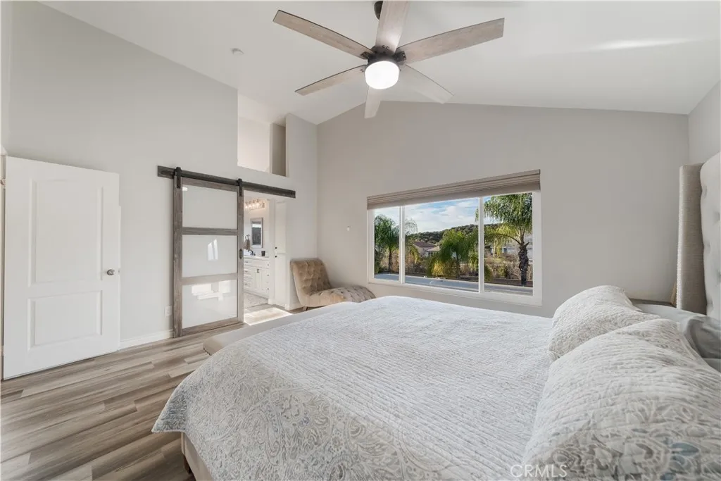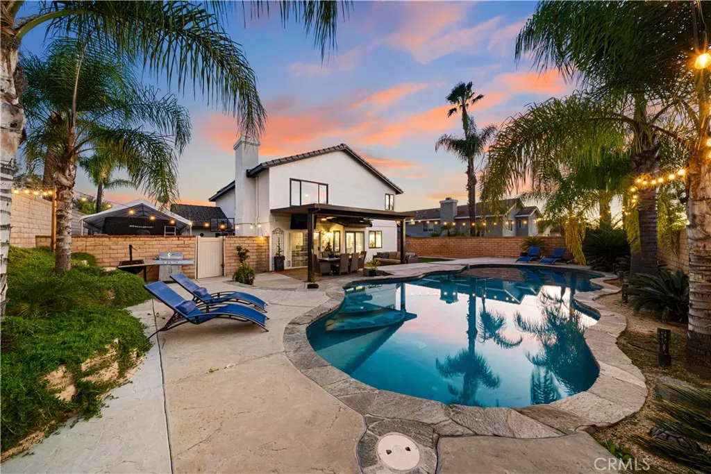 Price Improvement! Murrieta Pool Home with RV Parking, Paid Solar, and No HOA. This beautifully upgraded 4-bedroom, 2.5-bath home with a 3-car garage offers the perfect blend of space, comfort, and outdoor living in a highly convenient location. Enter through double doors into a bright interior featuring vaulted ceilings, abundant natural light, and neutral finishes throughout. Formal living and dining areas create inviting spaces for gatherings, while the remodeled kitchen opens to the family room for comfortable everyday living. The kitchen features quartz countertops, updated cabinetry, stainless steel appliances, recessed lighting, coffered ceiling, wine refrigerator, breakfast nook, and a movable quartz island. The adjacent family room includes a cozy gas fireplace and views of the backyard. Upstairs you will find all four bedrooms, including a spacious primary suite with French door entry, vaulted ceilings, and an ensuite bath with soaking tub, walk-in shower, dual quartz vanity, and walk-in closet. Step outside to your private backyard retreat. Just in time for summer, enjoy the sparkling in-ground pool, patio entertaining space, artificial turf, mature palm trees, and block wall fencing for privacy. The property also offers gated RV parking with a 30-amp hookup and a large side yard. Additional highlights include paid solar helping heat the pool, tankless water heater, newer dual-pane windows, and a whole-house fan. Conveniently located near Murrieta schools, parks, shopping, Costco, hospitals, and quick access to the 15 and 215 freeways. Previous escrow cancelled