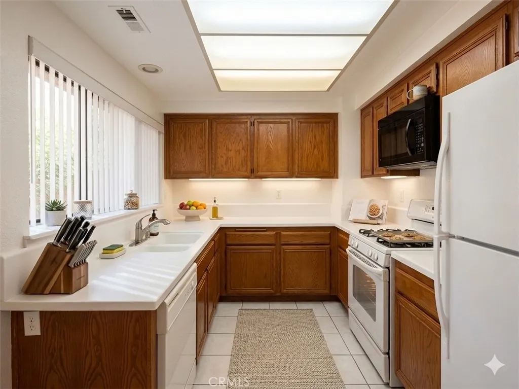 Very desirable gated community. Tri-level Townhouse. 2 Bedroom 3 bath on an end unit. Has a great location inside the complex. Good size private patio are just outside of the living room. Kitchen and breakfast nook located on the 2nd level, it also has access to a nice size balcony/terrace on the second level. Large open dinning area; which is elevated and overlooks the whole living area and fireplace. Between the first and 2nd Floor there is a room that can be use either as Open office or anything you can imagine. Attached 2 Car garage that includes a ready to use outlet for an electric car charger. Laundry hookups are also located in the garage. great community with 2 pools and spas, trial for walking.