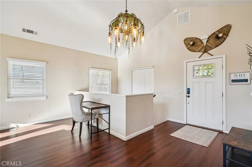 Designed for those who value craftsmanship, setting, and quiet distinction, this contemporary mountain lodge offers a refined take on Lake Arrowhead living. Set amid towering pines with full lake rights, the home balances architectural presence with a deep connection to its surroundingsideal as both a full-time residence and a sophisticated retreat. The main living level is defined by volume and light, with soaring ceilings, expansive windows, and an open layout that frames the forest beyond while remaining grounded in warmth and scale. Thoughtful finishes and custom details throughout reflect a level of care that appeals to buyers who recognize quality without needing it announced. The primary suite is a true sanctuary, featuring a private deck positioned to capture sweeping panoramic views stretching from the Lake Arrowhead Country Club Golf Course to the Pinnaclesan iconic summit familiar to local hikers. Morning light, evening skies, and the subtle presence of nature define the experience. Below, the sound of a nearby seasonal waterfall drifting down from Brentwood Drive adds a rare and calming dimension, flowing into the canyon and onward toward the San Bernardino National Forest. Multiple outdoor spaces extend the living areas, offering natural settings for quiet reflection or effortless entertaining. Additional bedrooms and flexible lower-level spaces allow the home to adapt seamlessly to guests, work, or leisure without compromise. This is a property for buyers who value location, privacy, and enduring designwhere mountain living feels intentional, elevated, and tim