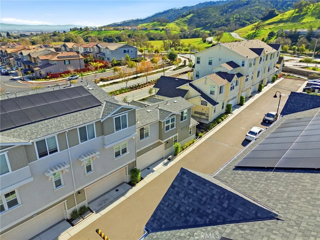 Welcome to 6385 Paysar Lane in the highly desirable Ascent community at Glen Loma Ranch in Gilroy. Built in 2023, this rare end-unit townhouse lives like a single-family home, offering a true residential-style frontage, no front neighbors, and an expanded private yard that delivers exceptional privacy. With over $70,000 in premium upgrades, scenic surroundings, well-maintained community spaces this home looks brand new. The entire lower level is thoughtfully designed for both comfort and entertaining. The modern kitchen features stainless steel Whirlpool appliances, crisp white cabinetry, a farmhouse sink, and a seamless connection to the dining and living areas, creating an effortless open-concept flow. Oversized windows frame peaceful hill and dog park views while filling the space with natural light. The first-floor primary suite is privately situated and captures beautiful morning sun, complete with a spa-inspired bath showcasing quartz countertops, a spacious walk-in shower, and generous closet space. Luxury vinyl plank flooring throughout the entire house, recessed lighting, owned solar, EV pre-wiring, a tankless water heater, Energy Star certification, and direct access to the 2-car attached garage complete the well-appointed main level. Upstairs, youll find two spacious secondary bedrooms and a full bath with dual vanities, offering flexibility for guests, a home office, or growing households. Convenient access to downtown Gilroy, Caltrain, shopping, dining, and major commuter routes, this home delivers the perfect blend of privacy, style, and modern efficiency in o