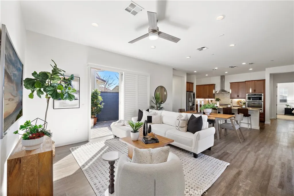 Welcome to this exceptional single-level residence, impeccably upgraded and truly move-in ready. Set on one of the largest lots in the community, this home offers an ideal blend of style, comfort, and indoor-outdoor living. The thoughtfully designed floor plan features two bedrooms, two bathrooms, and a generous office/den, along with a full driveway for added convenience. The wrap-around backyard is perfectly suited for entertaining, showcasing custom pavers, a built-in fire pit, and a covered California room with expansive sliding doors that seamlessly connect the indoors to the outdoorsall with minimal yard maintenance required. At the heart of the home is a beautifully upgraded kitchen complete with granite countertops, stainless steel appliances, and a large walk-in pantry. The private primary suite offers a peaceful retreat with a spacious walk-in shower and dual vanity sinks. Plantation shutters throughout add timeless elegance and enhance natural light. Additional highlights include a Tesla solar system with twelve panels, a tankless water heater, whole house water system and modern efficiency upgrades throughout. Residents enjoy access to resort-style 55+ amenities, including pools, spa, fitness center, and luxury clubhouses, creating an unparalleled lifestyle in a vibrant, active community. In close proximity outside of this community you will find an abundance of dining and entertainment options. Just a quick 15 minute drive to the beach. Uniquely positioned. Perfectly maintained. You don't want to miss you this opportunity- and just in time for the spring and su