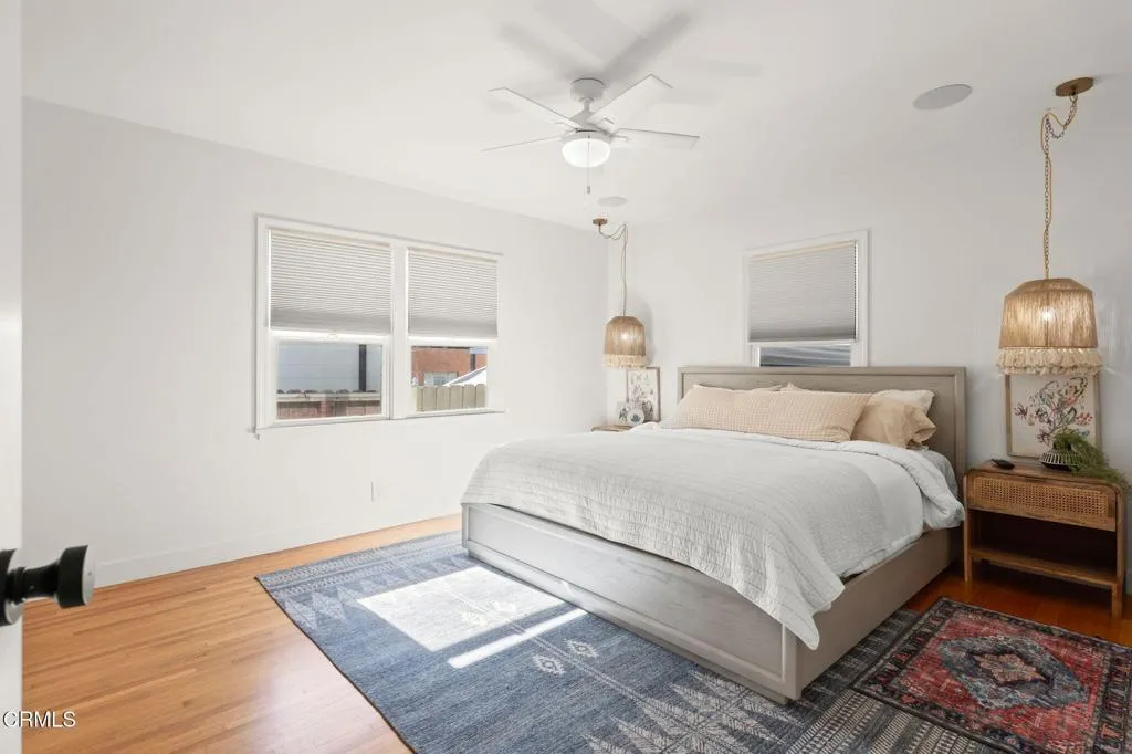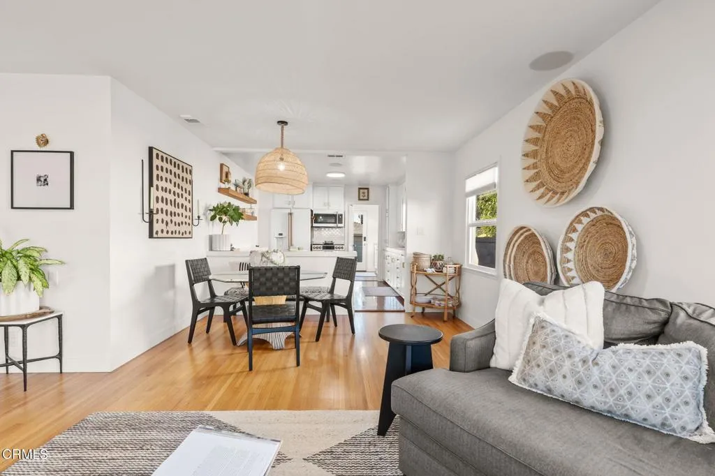 Located in one of Midtown Ventura's most desirable neighborhoods, this recently remodeled 3-bedroom, 2-bath residence showcases a thoughtfully curated coastal-modern design with intentional finishes throughout. The open living and dining areas are anchored by original, restored hardwood floors and filled with natural light from Andersen windows at the front of the home. One bedroom is positioned just off the living space, ideal for a home office or flex room, while the remaining bedrooms are arranged along the left side of the home, with the primary suite privately set toward the rear and featuring a walk-in closet. The updated kitchen blends modern cabinetry with functional design and connects to a dedicated laundry area with an additional quarter bath. Outdoors, the spacious backyard offers newer turf, room to entertain, and gated boat or RV parking behind the two-car garage, which includes an attached bonus room with ADU potential. Completing the home is an impressive, fully integrated security system and a top-tier whole-home surround sound system, enhancing both comfort and peace of mind. This is a turnkey Midtown Ventura home where design, technology, and lifestyle come together seamlessly.