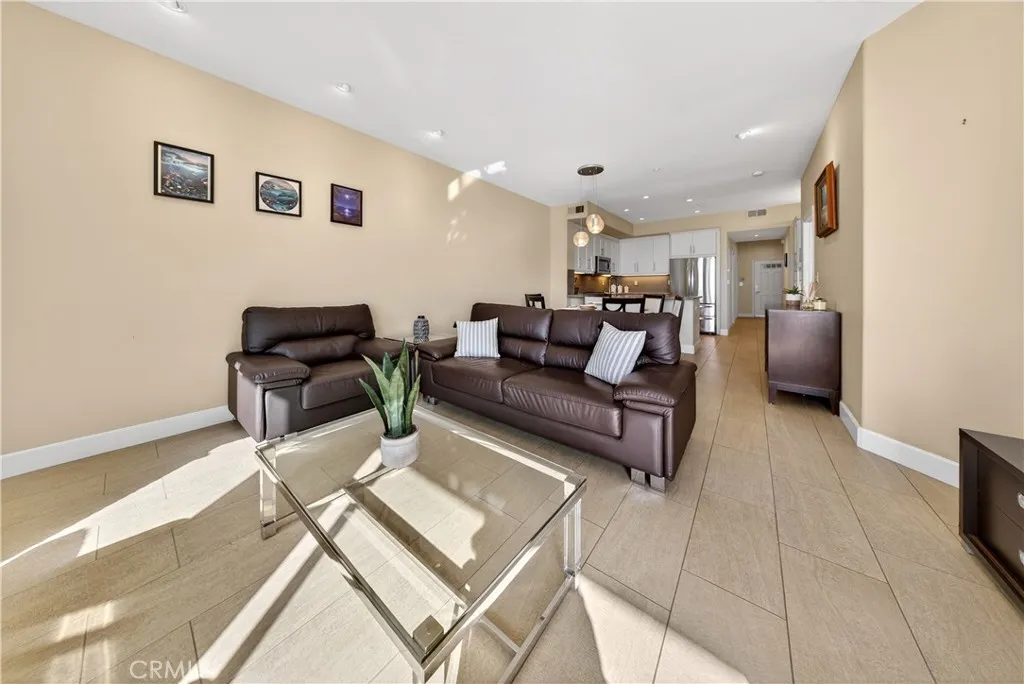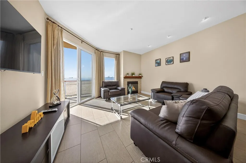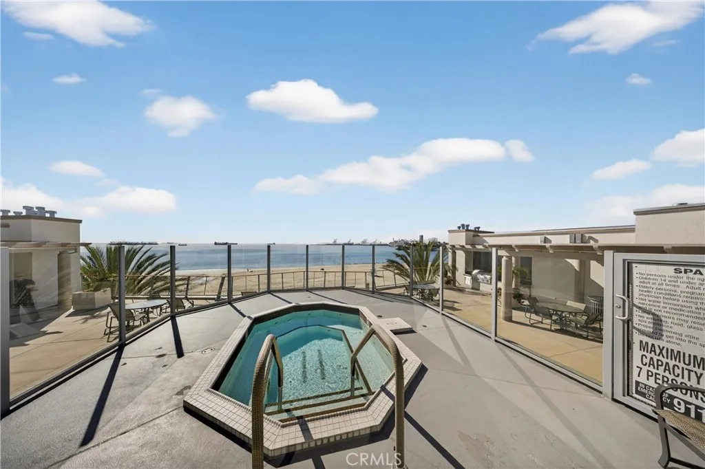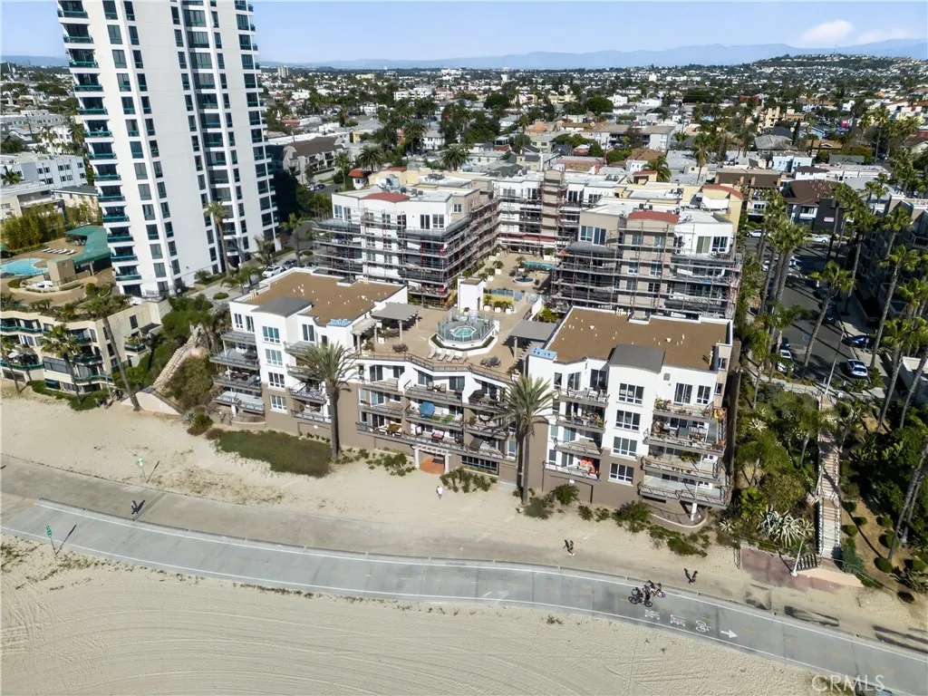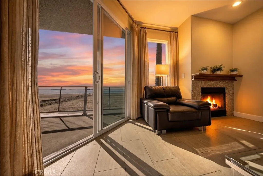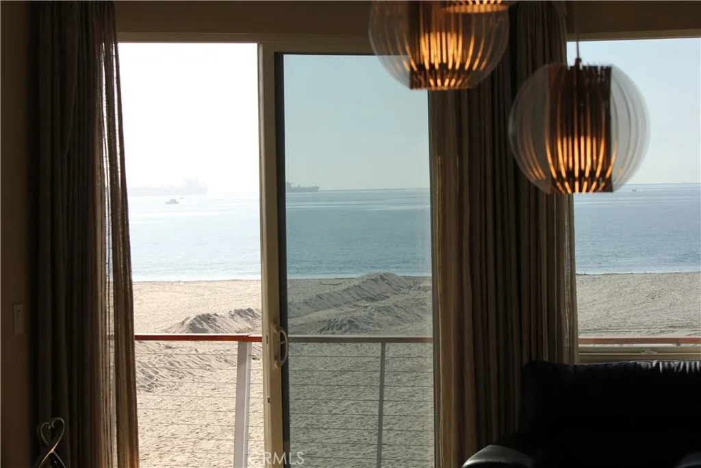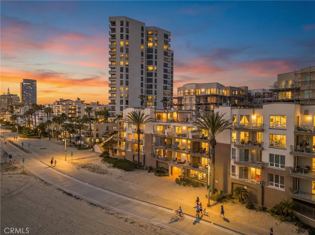 Exceptional direct-on-the-sand residence offering unobstructed ocean and coastline views and an elevated coastal lifestyle. Contemporary tile flooring flows throughout the main living areas, complemented by clean architectural lines, recessed lighting, and refined finishes. The guest bedroom and dedicated office feature custom window treatments, modern ceiling fans, and built-in cabinetry, including a custom workspace ideal for todays work-from-home needs. The guest bath showcases custom tile flooring extending into the shower, classic subway tile, refined fixtures, and a built-in niche. Shaker-style custom cabinetry is featured throughout the home. The kitchen offers stainless steel appliances, a five-burner stove, farmhouse-style stainless sink, and custom tile backsplashideal for everyday living and entertaining. The living room is highlighted by three floor-to-ceiling windows framing breathtaking ocean views. The primary suite offers sweeping Pacific Ocean views, plush low-pile carpet, custom lighting, a spa-inspired bath with walk-in shower, bench, niche, customized walk-in closet, and additional built-in storage. Residents enjoy resort-style amenities including a rooftop pool, jacuzzi, BBQ area, fireplace, and panoramic sunset views, along with a community room for private events. Building amenities include a full-time Front Desk Manager during business hours, a daytime security committee, and an on-site security guard from 11:00 PM to 7:00 AM.
