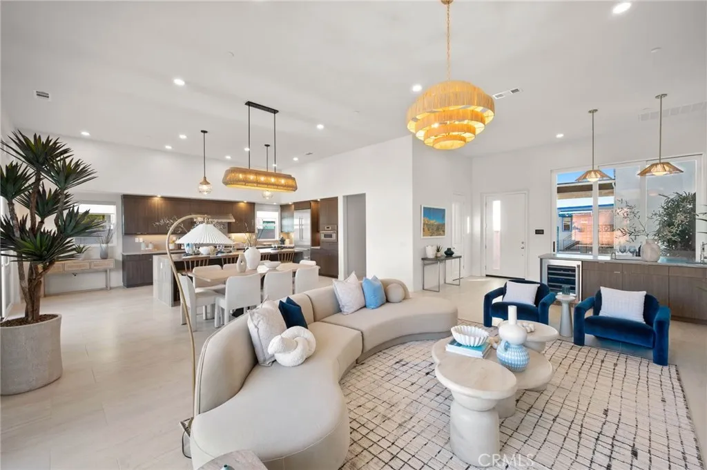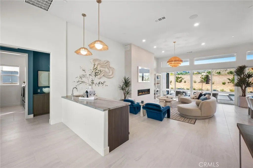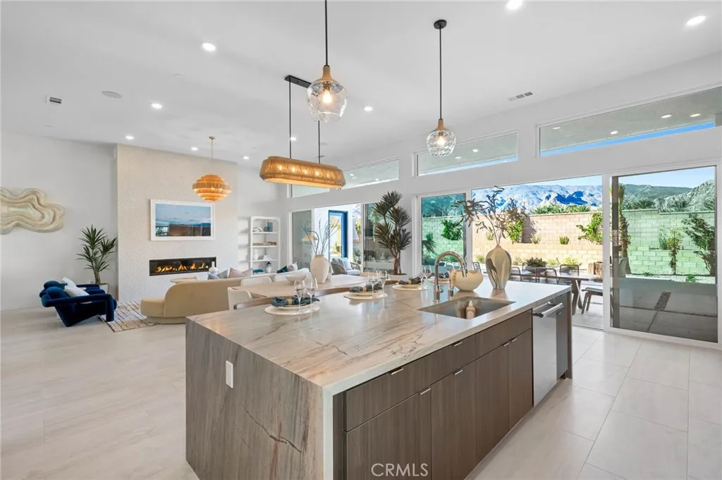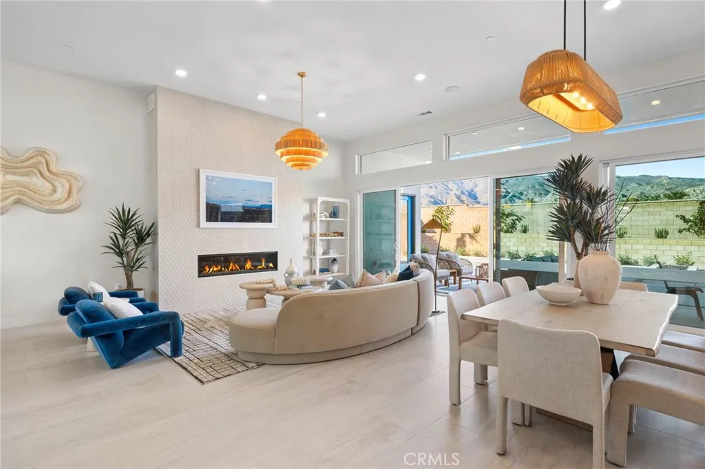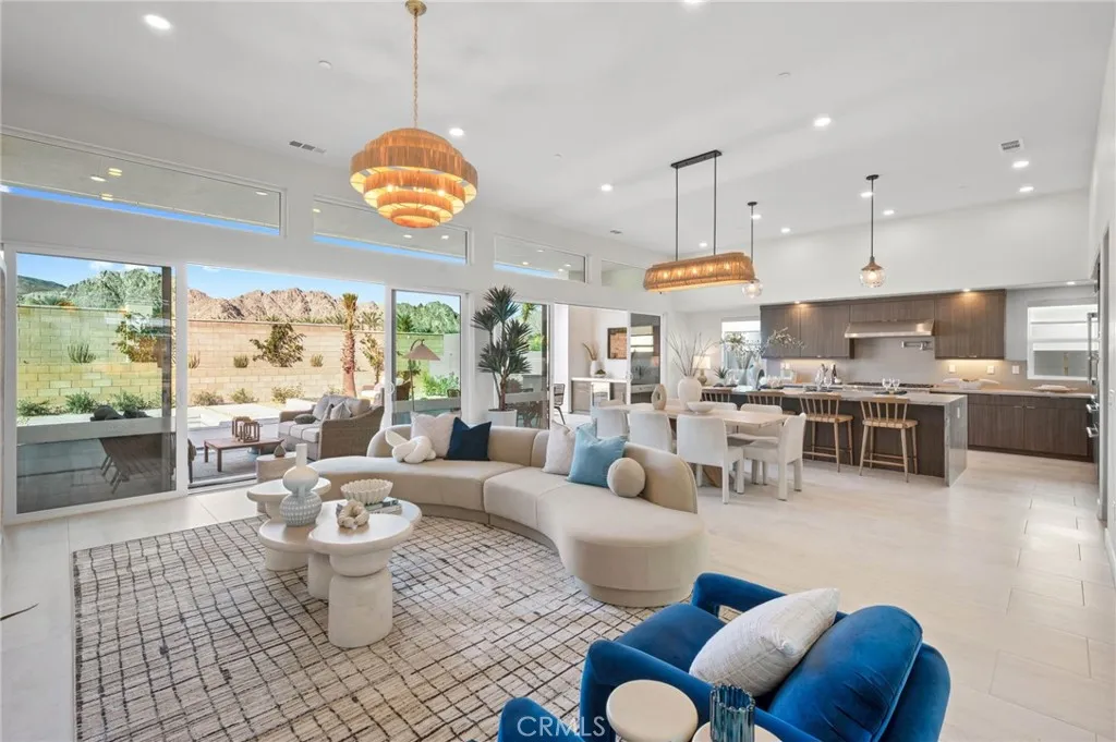 Welcome to Oasis by Crestwood Communities, a gated community offering modern desert living with breathtaking mountain views in the heart of La Quinta. This unique single-story modern home features 2,458 square feet with 3 bedrooms, 3.5 bathrooms, and a 3-car garage, and is accessed through a private gated courtyard that provides both privacy and style. Inside, soaring ceilings, striking 12x24 tile floors, and an open-concept great room are filled with natural light from front to back, enhanced by expansive sliding glass doors that create a seamless indoor-outdoor flow to the covered patio. The outdoor space is resort style, perfect for entertaining or relaxing beside the included pool and spa. The open kitchen is designed for both functionality and elegance, featuring designer quartz countertops, an oversized island with waterfall edges, modern flat panel cabinetry with warm accent lighting, soft-close hinges, and stainless-steel Bosch appliances. Each bedroom includes its own en-suite bathroom, while the primary suite offers a resort-style retreat with direct access to the covered patio and a spa-inspired bathroom, thoughtfully separated from guest bedrooms for added privacy. Solar is available for purchase or lease, and the home includes many additional amenities. Conveniently located near golf, hiking, biking, and horseback riding, yet away from traffic and congestion. Model grand opening is Saturday, January 24th. Photos shown are of the model home; the subject property is currently under construction.