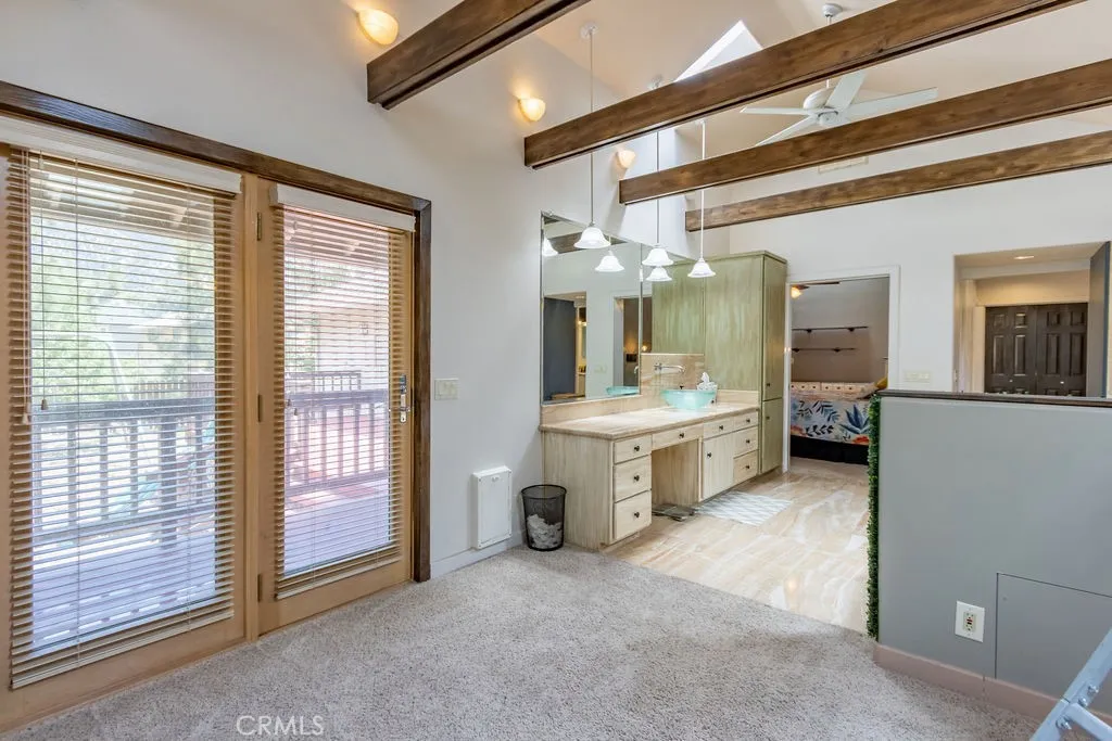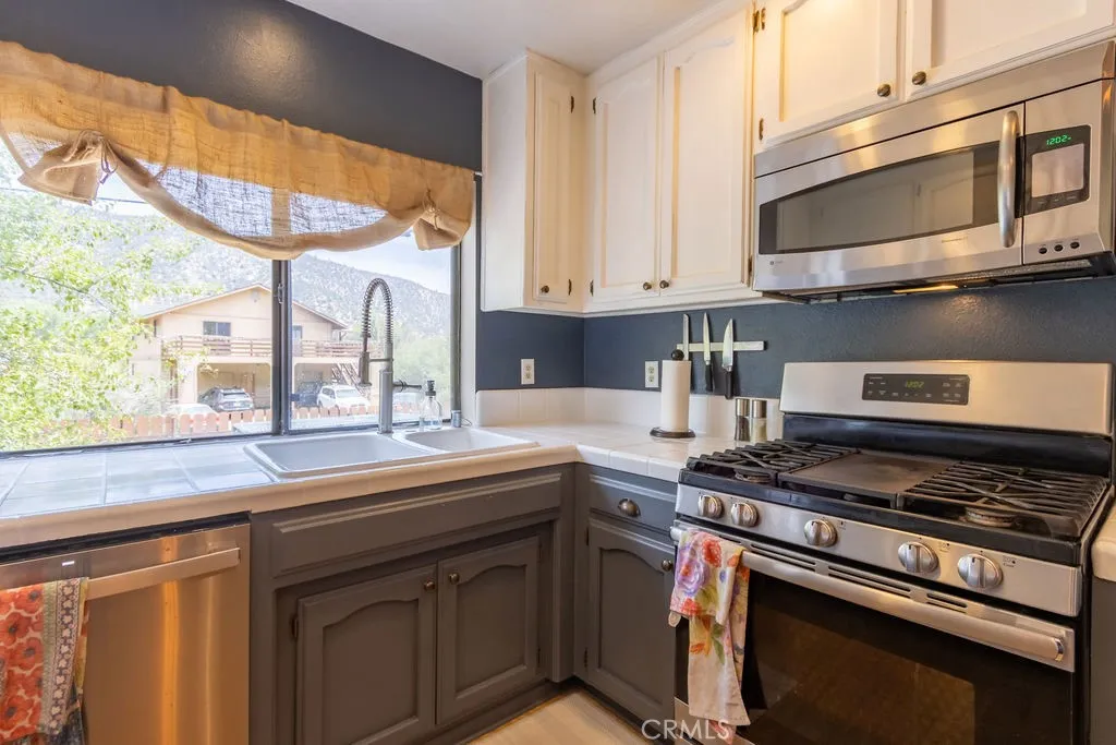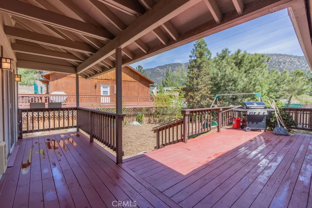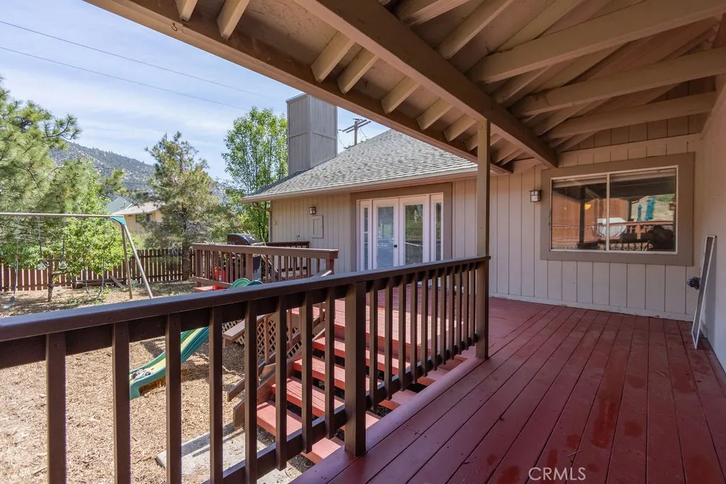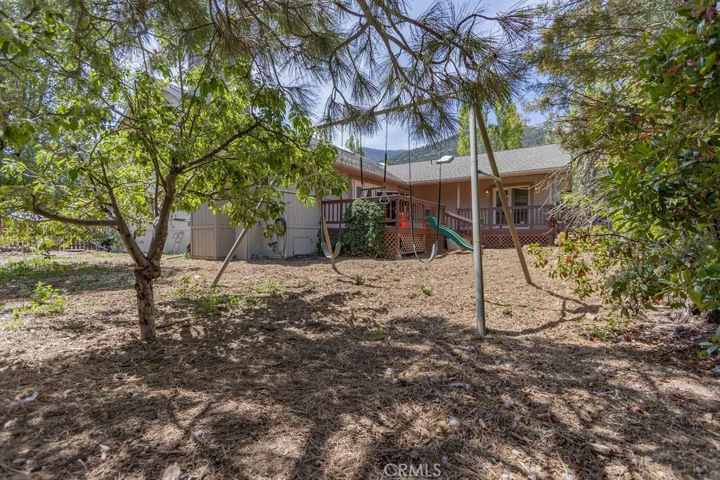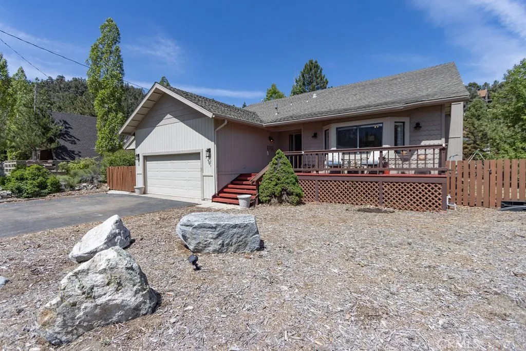 Welcome to this stunning single-level home, a rare gem spanning 2,336 square feet, located on a corner flat lot in the picturesque Pine Mountain Club. This property boasts beautiful mountain views and is conveniently close to the village with cafes, a general store, and local shops. Also close by are the local amenities, including parks, basketball courts, tennis courts, a baseball field, a clubhouse, a recreation room, a golf course, an equestrian center, a scenic lake with catch-and-release fishing, and an Olympic-style pool with a hot tub. As you enter through the front door, you are welcomed into the bright living room, featuring vaulted ceilings, a cozy pellet stove, and ample windows, including a charming bay window that invites natural light. The kitchen is a chef's dream, equipped with stainless steel appliances, abundant counter and cabinet space, and it seamlessly flows into the family room. The family room features French doors that lead to the back deck, perfect for entertaining or enjoying the serene outdoors. This home offers three spacious bedrooms, including a luxurious primary suite that features three closets, vaulted ceilings, and skylights, bathing the room in natural light. The primary bathroom is a true retreat, complete with a jet tub, separate walk-in shower, an expansive vanity, large wooden ceiling beams, and an extra room that can serve as an office or gym, also with French doors to the back deck. The home includes two full bathrooms, ensuring ample convenience for family and guests. Additional features include a whole house generator for peace of