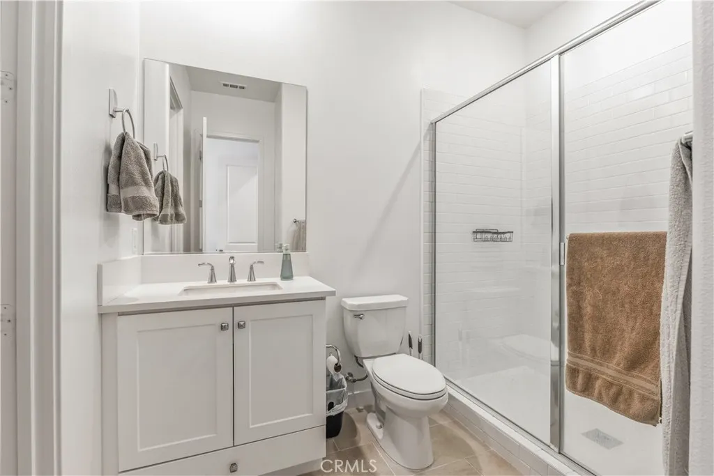 YOU CANNOT BEAT THIS DEAL! ASKING PRICE REDUCED TO SELL TODAY! Effortless living starts here - where modern design meets a lock-and-leave lifestyle. This single-level home crowns a third-floor walk-up, offering added privacy, natural light, and a peaceful retreat the moment you arrive. Inside, the open living, dining, and kitchen layout makes daily life effortless: mornings begin at the oversized island, weeknight dinners flow easily, and everyone enjoys their own space across four bedrooms and four bathrooms, including a private suite ideal for guests or working from home. Step onto the spacious balcony for morning coffee, sunset meals, or relaxed weekend BBQs. A large laundry room, added window shutters, and a private storage closet just outside the unit keep everything organized. An extra-long two-car tandem garage with EV charger, tankless water heater, and solar panels add efficiency, cost savings, and peace of mind. Includes 2+ years of home warranty & HOA paid fire insurance! Thrive in the connection and convenience found only in the FivePoint Valencia community - parks, trails, neighborhood events, farmers market, and quick freeway access, all without yard or exterior headaches.
