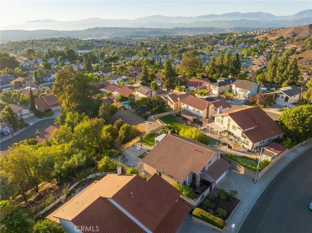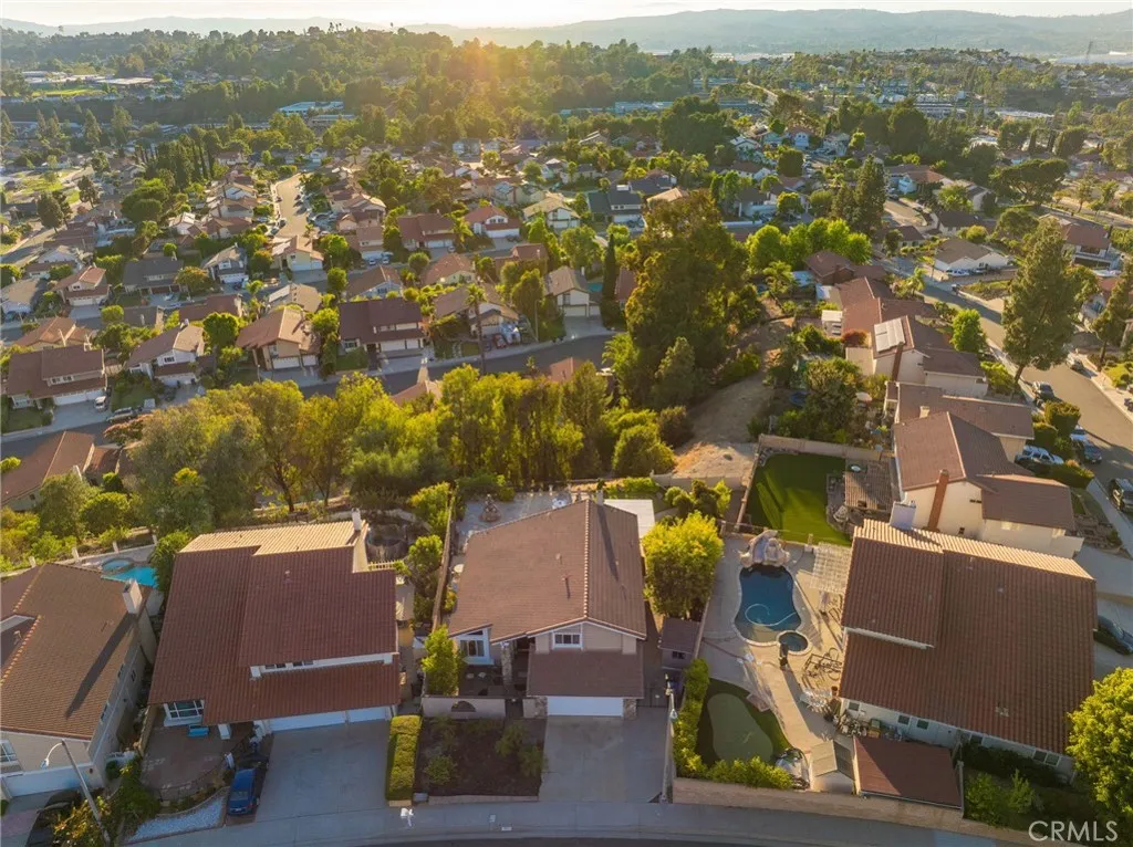 This stunning tri-level home is nestled in the hills of Diamond Bar. Offering breathtaking panoramic views and perfectly positioned to capture gorgeous sunsets from the serene backyard or the private upstairs balcony. This residence includes a highly desirable downstairs bedroom and full bath, ideal for guests or multi-generational living. When entering the home you step into the formal living room where rich wood flooring and custom crown molding add timeless elegance and character. Step down into the formal dining area which leads you to the kitchen and family room, perfect for entertaining. The kitchen is a true delight, featuring oak cabinetry, granite countertops, custom backsplash, stainless steel appliances including a 5-burner stove, brand new sink, faucet, and garbage disposal, also an eat-in dining area. Upstairs, the primary suite is a peaceful retreat with double-door entry, two large closets (including a walk-in), and additional hidden storage closet behind the paneled wall, and a private balcony with unobstructed views of the surrounding hills. The ensuite bathroom boasts dual sinks, and a jetted bathtub with a window to take in the gorgeous view. Two additional guest bedrooms and a full bathroom with a tub/shower combo complete the top level. Accessibility features are present in every bathroom, promoting safety and ease of movement. Thoughtfully upgraded, the home includes dual-paned windows, a 4-ton AC unit, stair climber to provide added ease for navigating between levels, new security system with cell phone access, indoor laundry, and the home has been re