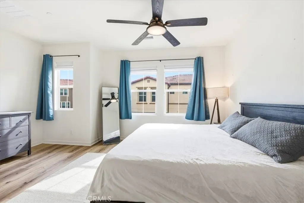 Resort-Style Living in the Gated Community of Iron Ridge No Mello Roos Wake up to sun-filled spaces, enjoy morning coffee on your private balcony, and end your day with sunset views in one of Iron Ridges most sought-after homes where everyday living feels like a getaway. Thoughtfully designed for both comfort and connection, this nearly 2,100 square foot residence offers the perfect blend of open-concept living and flexible spaces. The first-floor bonus room with a full bath and private patio access creates endless possibilities whether its a quiet home office, guest retreat, fitness space, or your own personal escape. At the heart of the home, the kitchen becomes a natural gathering place featuring an oversized island, quartz countertops, stainless steel appliances, and generous storage. It flows effortlessly into the dining area and out to a covered balcony, inviting you to dine al fresco, host friends, or simply unwind in the fresh air. The light-filled living room opens to a second balcony, creating a seamless indoor-outdoor lifestyle that defines Southern California living. Upstairs, the primary suite offers a true retreat a peaceful space to recharge, complete with a spa-inspired bath, dual vanities, and a spacious walk-in closet. Two additional bedrooms provide flexibility for family, guests, or creative space, while the upstairs laundry room adds everyday ease. Life in Iron Ridge extends far beyond your front door. Spend weekends lounging by the resort-style pool, enjoying the cabanas and spa, playing tennis or pickleball, exploring scenic hiking trails, or enj