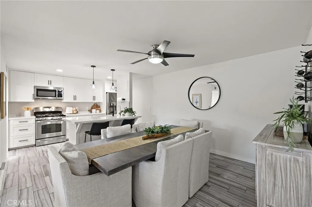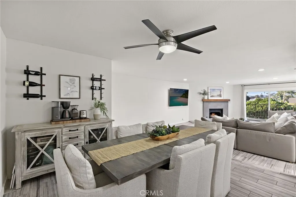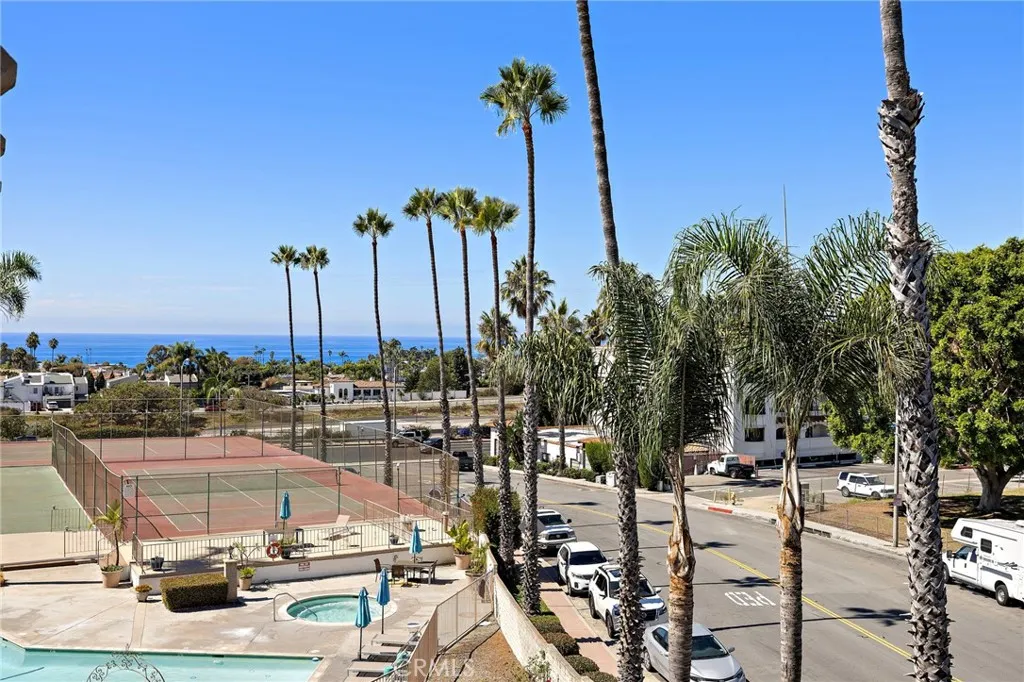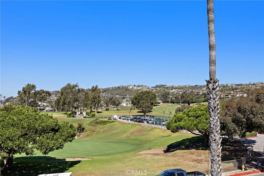 Ask about assumable veteran-to-veteran financing at a 3% interest rate. Perched on the top level (no footsteps above you) of the Ocean Fairways community, this upgraded two-bedroom, two-bath home offers 1,326 square feet of single-level living and a rare vantage point over the lush fairways of the San Clemente Municipal Golf Course, with glimpses of the ocean beyond. Large windows and a spacious covered balcony draw in light and capture the home's tranquil setting. Inside, a modern concrete fireplace with custom mantel anchors the open living area. The kitchen combines quartz countertops, subway tile accents, ample cabinetry, and breakfast-bar seating for effortless everyday use. The primary suite enjoys wide golf course views, a generous closet, and an updated bathroom with double vanity and walk-in shower. A secondary bedroom and full bathroom complete the layout, while a dedicated laundry closet adds everyday convenience. Residents enjoy a private, gated community with countless amenities pool, spa, tennis courts, recreation lounge with kitchen and fireplace, fitness rooms with saunas, and secure building access. HOA dues include water, cable TV, sewer, trash, insurance, and exterior maintenance offering exceptional value and low-maintenance living. The location is a standout. Set directly across from the San Clemente Municipal Golf Course, the home also offers easy access to Vista Bahia Park and San Luis Rey Park for outdoor recreation. Plus, its only .9 miles to Calafia Beach, 1.6 miles to downtown San Clemente, and a short ride to Trestles, one of Southern Californi