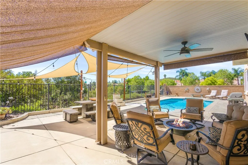 ***Priced for a quick sale*** Rare Find! Spacious Model Home with Pool, RV Parking, Low Taxes & No HOA! Welcome to this stunning former model home offering over 3,100 sq. ft. of beautifully designed living space perfectly situated on a large corner lot with no direct neighbors behind for added privacy! Ideally located in the award-winning Murrieta School District, this home is just minutes from the 15 and 215 freeways, shopping, and dining making it the perfect blend of comfort and convenience. Step inside to a grand entry with soaring cathedral ceilings in the formal living and dining area, creating an impressive open feel. The thoughtfully designed floor plan features 5 bedrooms, including one downstairs with a full bath, plus two lofts (one can easily be converted into a 6th bedroom). The spacious family room opens to a gorgeous cherry wood kitchen with ample cabinetry and counter space ideal for entertaining and family gatherings. Step outside to your own private oasis a huge, flat backyard with a sparkling pool and spa, two firepits, and two permitted Alumawood patio covers, perfect for year-round outdoor living. The RV side offers an extra-tall Alumawood cover for added protection and flexibility. Youll also enjoy a two-car garage, a separate one-car garage, and RV parking plenty of space for all your toys and vehicles! Located in a newer, quiet neighborhood with very low taxes and no HOA, this home truly has it all. All appliances are included! Dont miss your chance to own this exceptional Murrieta home schedule your private showing today!