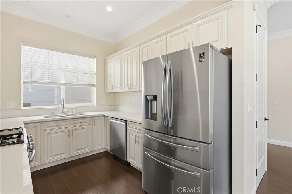 Welcome to 7608 Ani Way, a well-maintained gated single-family residence located in North Hollywood. Built in 2016, this home offers 4 bedrooms and 3 full bathrooms, including a bedroom and full bath on the main level, suitable for guests, extended family, or a home office. The open floor plan features 1,686 square feet of living space with no carpet throughout, crown molding downstairs, and custom closets in every bedroom. The kitchen is equipped with stainless steel appliances and soft-closing cabinets, which continue into the bathrooms for a consistent, updated finish. The layout provides comfortable separation of living and sleeping areas while remaining open and functional. Additional features include a tankless water heater and a garage with custom cabinets and a built-in countertop, offering organized storage and added functionality. The property is situated on a very private, low-maintenance lot with three fruit trees. The gated community consists of only 15 homes and includes a private park for residents, supported by a low HOA. Conveniently located near shopping, dining, and major commuter routes, with close proximity to Burbank, Glendale, Van Nuys, and Valley Village. A solid opportunity to own a newer home in a small gated community.