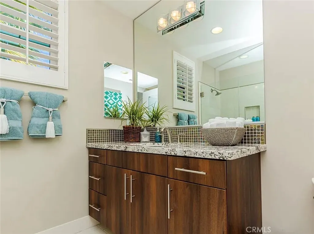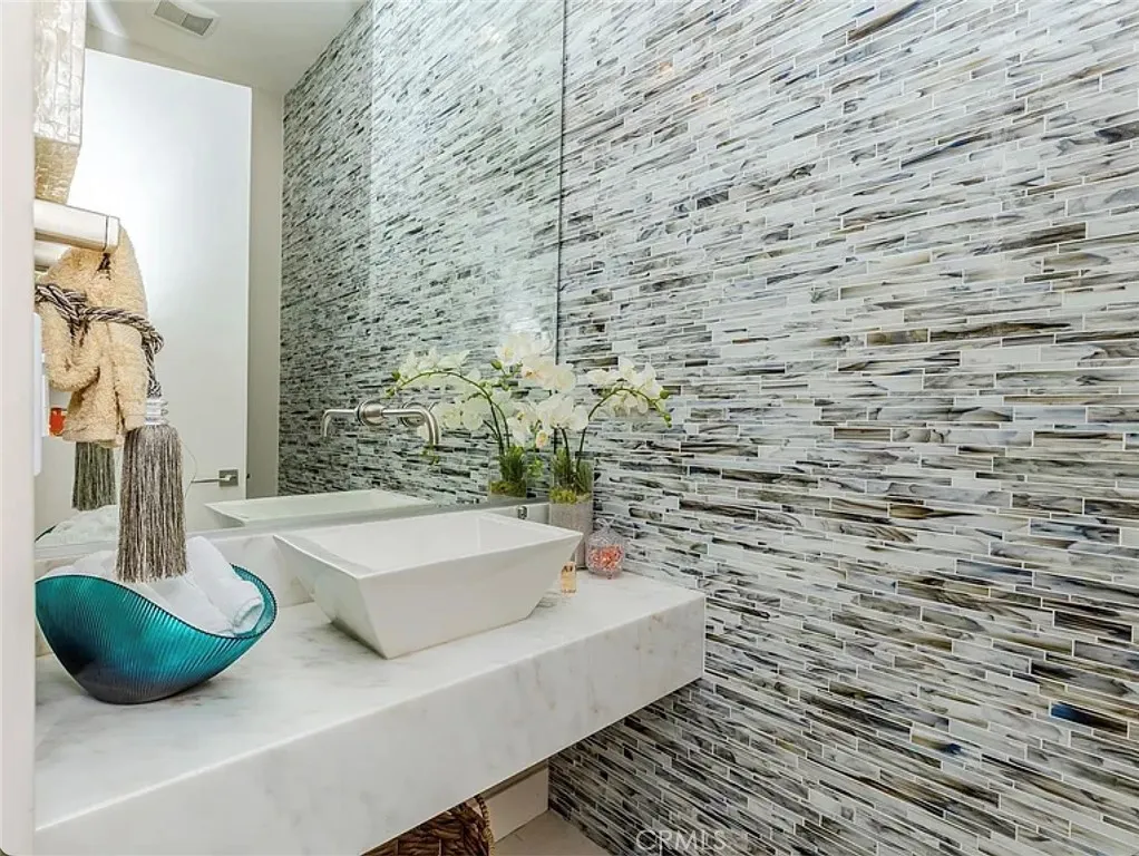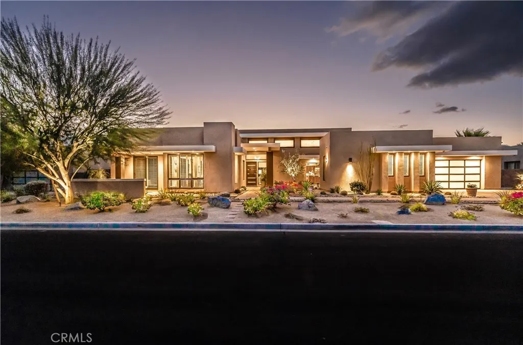 TOLL BROTHERS MODEL HOME | MODERN LUXURY IN ESTILO One of three original model homes by award-winning Toll Brothers, this exceptional residence behind the exclusive gates of Estilo showcases refined modern living with striking architectural detail throughout. Upon entry, soaring 16-foot ceilings, dramatic chandeliers, and walls of natural light create an immediate sense of grandeur. The open-concept great room is ideal for relaxation and entertaining, anchored by a statement stone fireplace and complemented by a full entertainers wet bar with ice maker, wine refrigerator, and high-end Control4 surround sound throughout the home. The gourmet kitchen is a chefs dream, featuring an oversized marble-clad island, custom cabinetry, premium stainless steel Dacor appliances, and a spacious walk-in pantryperfect for everyday living or hosting. Oversized pocket doors provide seamless indoor-outdoor flow, opening from the kitchen to a private courtyard and from the great room to the resort-style backyard. Here, an infinity-edge Pebble Tec pool and spa are flanked by dual fire features, with smartphone-controlled pool functions and misters creating a private oasis for year-round enjoyment. A dedicated media room offers a cinematic experience with a 70 television and wine refrigeratorideal for movie nights or game days. Throughout the home, custom drapery, plantation shutters, and electric remote shades enhance both style and function. New carpet has recently been installed in the office, primary suite, and an additional bedroom. Guests will appreciate the attached one-bedroom, one-bath
