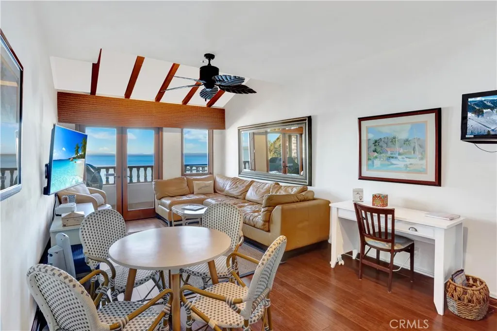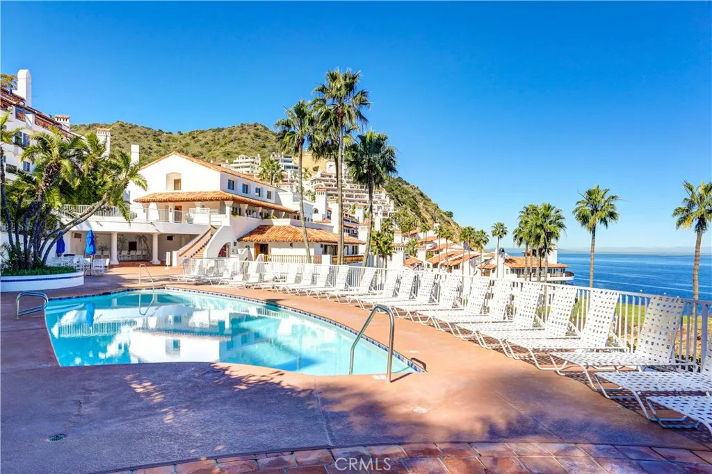 Looking for the perfect home with stunning ocean views? This exquisite 2-bedroom, 2-bath condo in beautiful Avalon offers breathtaking, sit-down panoramic views of the Pacific Ocean from all living areas and both bedrooms. The spacious living area is ideal for entertaining or relaxing, seamlessly flowing to a private balcony where you can truly experience the magic of Avalon living. Enjoy morning coffee or evening cocktails while taking in glorious sunrises and romantic sunsets over the sparkling Pacific. The well-appointed kitchen features modern appliances, sleek countertops, and ample storage. Both bedrooms are generously sized, providing comfortable retreats after a day of island activities. Residents enjoy resort-style amenities including a community pool and spa, fitness center, sauna, tennis courts, and a picturesque 18-hole putting course overlooking the sea, complete with a creek and cascading waterfalls. The sales price includes all furniture and most fixtures. A 2022 six-passenger golf cart is also included. Conveniently located just 35 steps down from the street. Dont miss this rare opportunity to own a piece of paradiseschedule your private showing today and experience Avalon at its finest.