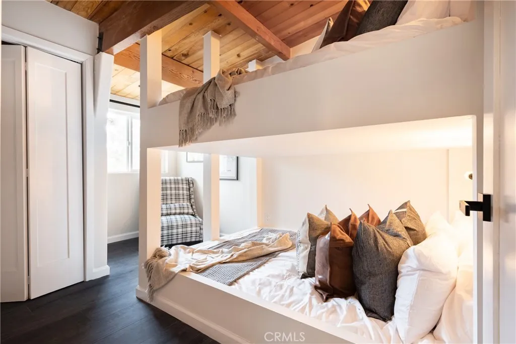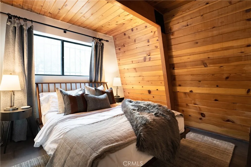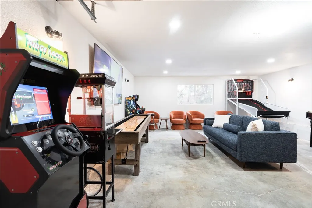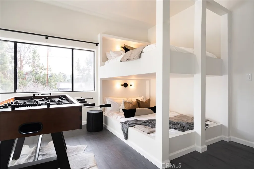 Enjoy expansive ski slope and mountain views from this beautifully remodeled and thoughtfully designed mountain retreat, offering the perfect blend of modern comfort and classic Big Bear character. Set on a quiet street yet conveniently close to the lake, ski resorts, trails, zoo, and Big Bear Village, this home delivers both privacy and accessibility, making it ideal for full-time living, second-home enjoyment, or investment potential. Spanning approximately 2,402 square feet, the home features a flexible multi-level floor plan with 5 bedrooms and 3 bathrooms, creating space for gathering while still allowing room to spread out. Warm wood accents, vaulted ceilings, and clean modern finishes work together to preserve the cabin feel while elevating the overall design. The main living area is open and inviting, anchored by a charming fireplace and seamlessly connected to the dining space and remodeled kitchen, perfect for entertaining and everyday living alike. Multiple levels provide thoughtful separation of space, with a private bedroom and bath on the lower level, the heart of the home and 2 bedrooms on the main level, and 2 bedrooms and a loft-style hangout and game area adding another layer of versatility upstairs. The garage has been transformed into a standout bonus space, currently set up as an impressive game room. Outdoor living is equally inviting, featuring a spacious deck, spa, fire pit, and seating areas designed for year-round enjoyment, while the slopes and mountain views enhance the setting and surrounding trees create a true cabin-in-the-woods atmosphere. Ad