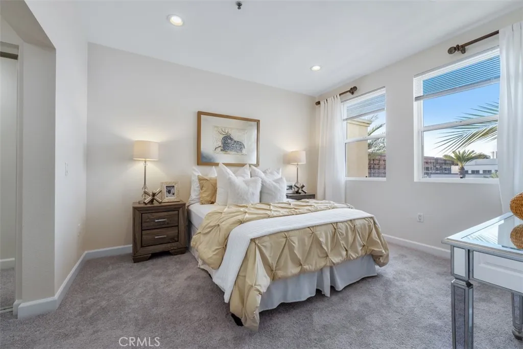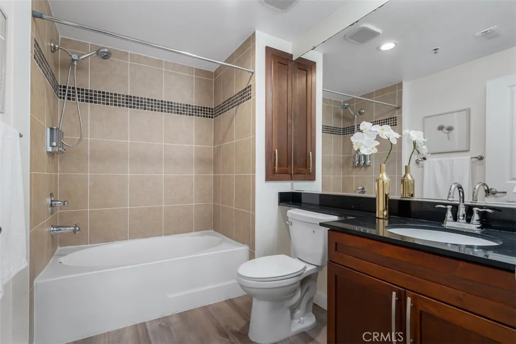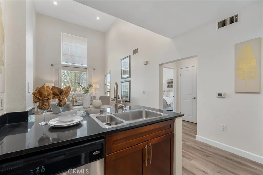 Experience refined urban living in this exceptional top-floor luxury residence located in Avenue One, in Irvine, one of the most prestigious, safest, and master-planned cities in the state. Known for its award-winning schools, walkable neighborhoods, cultural diversity, and premier city amenities, Irvine offers an unmatched Southern California lifestyle. This private top-level unit features no neighbors above, ensuring tranquility and exclusivity. The home showcases a dramatic high-ceiling living room filled with natural light, complemented by recessed lighting and a seamless open-concept kitchen, perfect for elegant entertaining and everyday sophistication. Enjoy outdoor living spaces, including a rear private patio/ balcony with street views. The thoughtfully designed floor plan offers two generously sized bedrooms and two full bathrooms, enhanced by a versatile loft space that functions beautifully as a third bedroom, executive home office, or creative studio. This residence has been meticulously remodeled with brand-new luxury vinyl plank wood flooring, modern baseboards, and fresh designer interior paint, delivering a turnkey, contemporary aesthetic. Residents enjoy access to resort-quality HOA amenities, beginning with a luxurious resident lounge with service kitchen, elegant seating areas, sparkling pool and spa, tennis and basketball courts, and retail shops just steps away. Perfectly positioned near major freeways, shopping centers, fine dining, public parks, and entertainment, this home blends luxury condo living, walkability, and convenience in one of Orange Coun