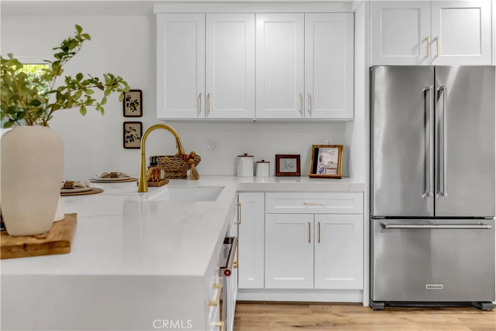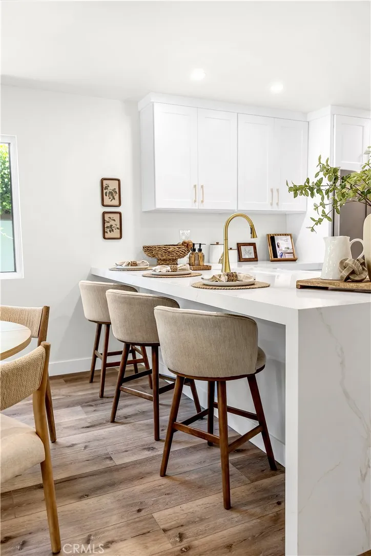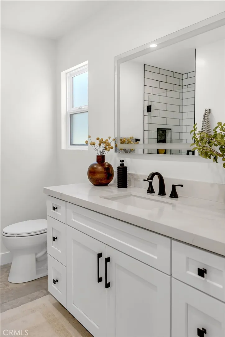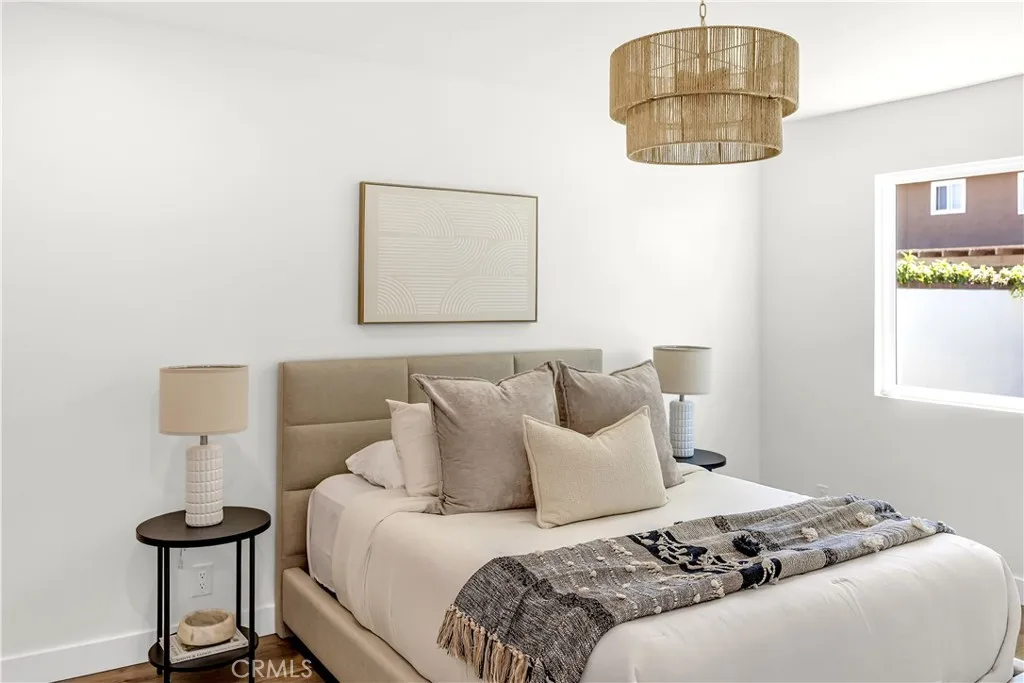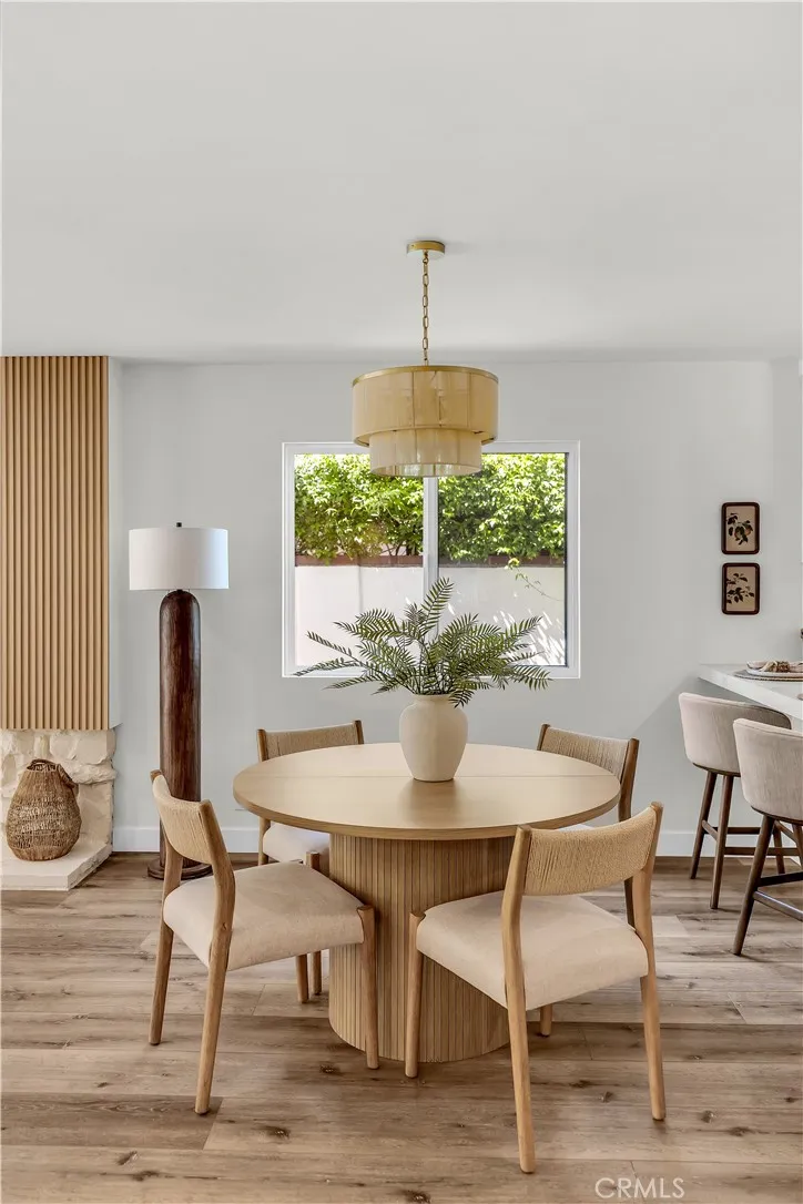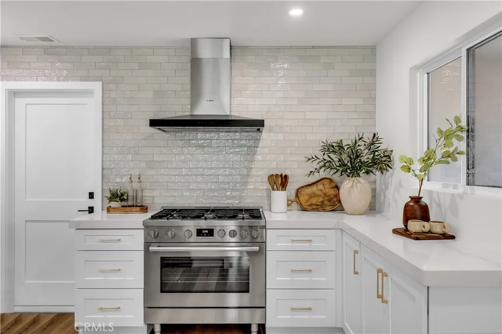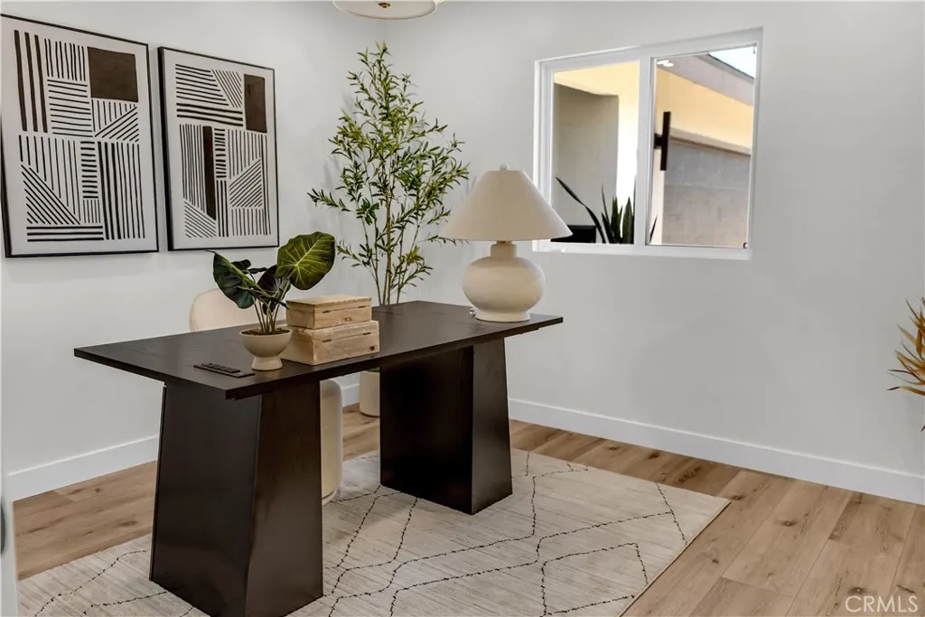 Renovated inside and out with a modern, warm design and high-end finishes, this gorgeous, move-in ready home is ideally located in the highly sought-after College Park East neighborhood within the award-winning Los Alamitos School District. Thoughtfully designed for todays lifestyle, the home blends comfort, efficiency, and effortless indoor-outdoor living. Recent upgrades include a brand new energy-efficient roof with cool sheathing, dual-pane windows and patio slider, a new 200-amp electrical panel, fresh interior and exterior paint, a new modern garage door, and a finished garage with drop-down ladder for attic access and new side gates. The home is also equipped with central air conditioning, providing year-round comfort. Inside, the open-concept layout creates a seamless flow between the living room, dining area, and kitchenperfect for both everyday living and entertaining. Natural light fills the space, highlighting wide-plank flooring, interior doors, baseboards, updated lighting, and a cohesive, inviting aesthetic throughout. The living room features a cozy gas fireplace, adding warmth and ambiance to the space. The beautifully renovated kitchen is a true centerpiece, featuring new cabinetry, sleek quartz countertops, an oversized peninsula with seating, and new high-end appliancescombining both style and functionality. The bathrooms have been remodeled with a clean, contemporary design, while the primary bedroom, privately located at the rear of the home, offers a peaceful and comfortable retreat. Step outside to a serene backyard with a covered patio, ideal for di