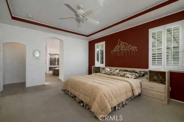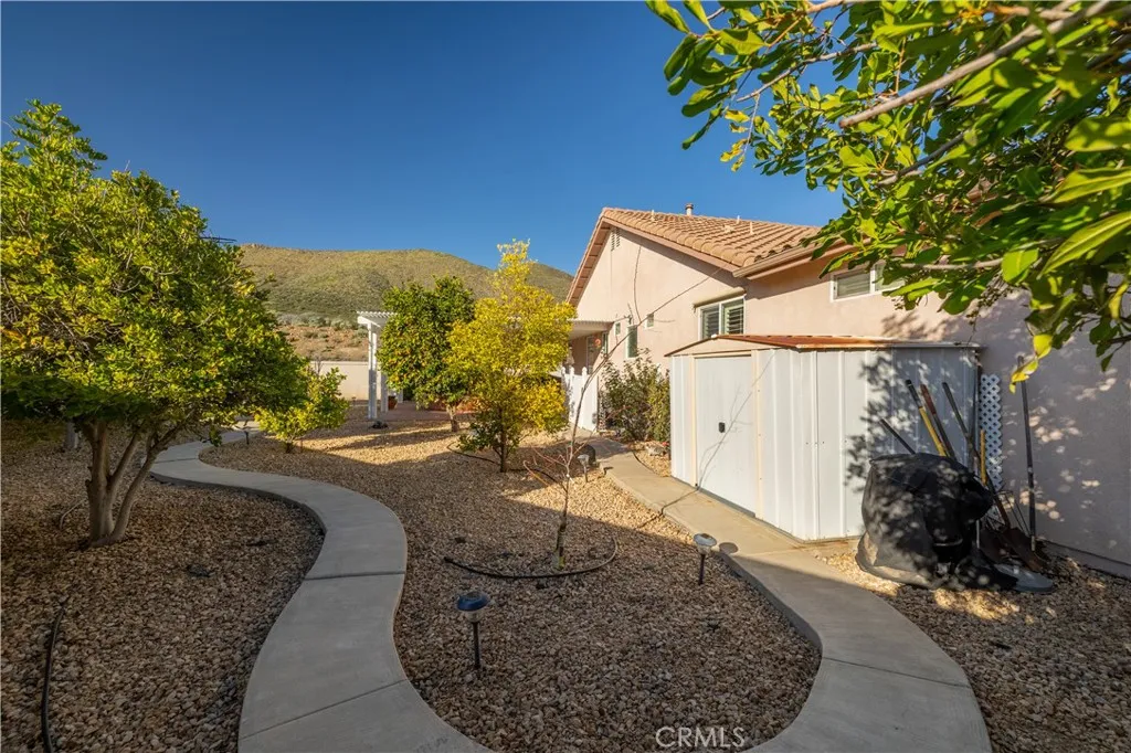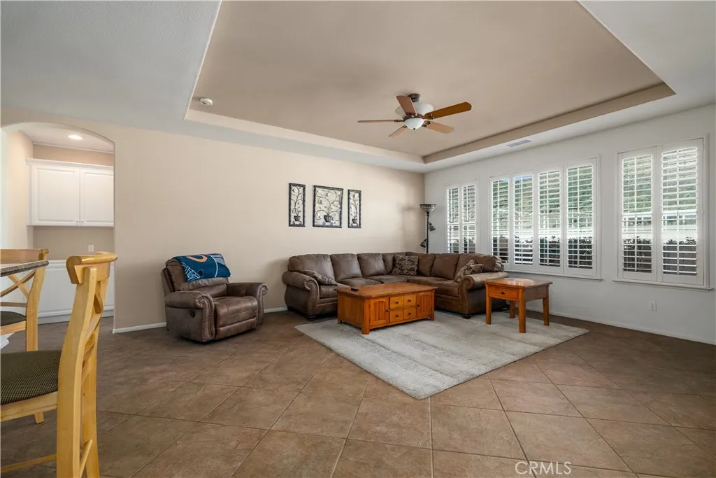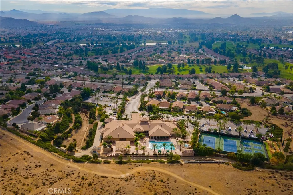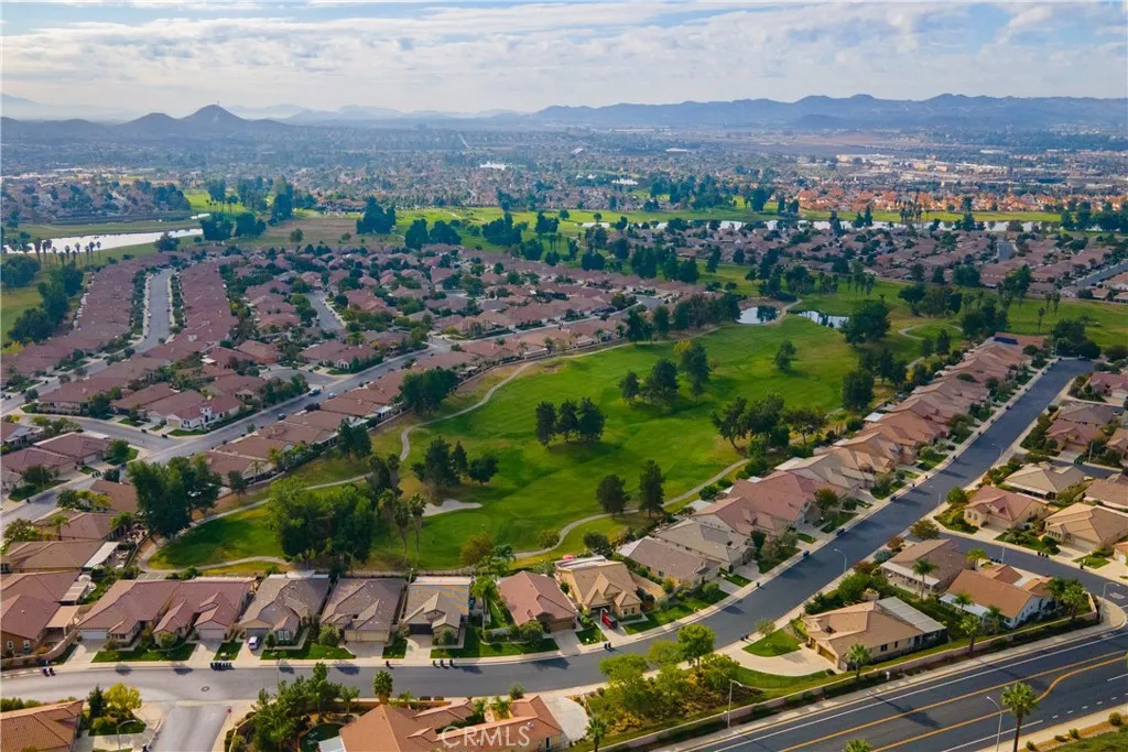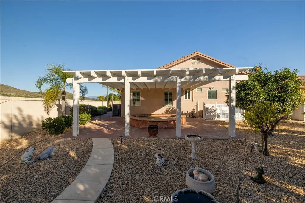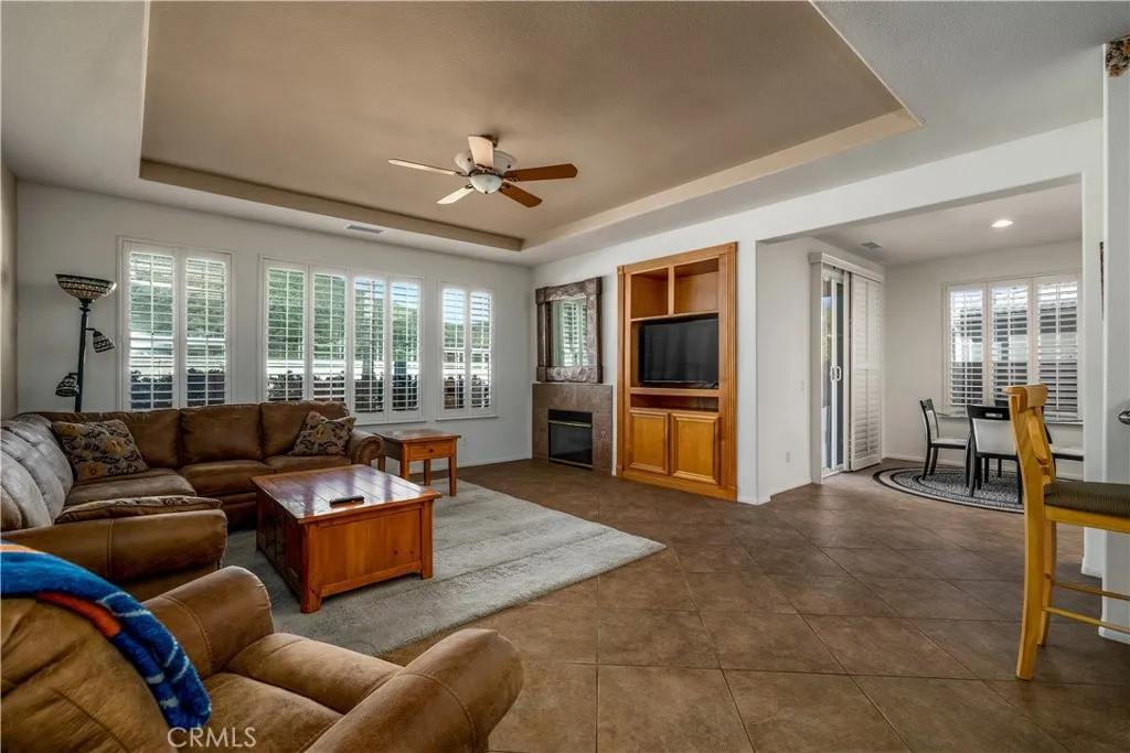 Welcome to the Gated 55+ Resort-Style Community of the Oasis! Take advantage of this rare opportunity! Own a beautifully maintained home located on a large elevated-premium lot. This home offers exceptional privacy with no rear or left side neighbors. Enjoy awesome views of Menifee Valley, hills/mountains, city lights and sunsets. This highly sought-after floor plan offers expansive tile flooring and plantation shutters throughout. The spacious living room is perfect for entertaining highlighted by high tray ceilings, a cozy fireplace, and amazing backyard views framed by the surrounding hills. Gourmet kitchen with butcher block island, granite counter tops, double ovens, crisp white cabinetry, counter height seating, casual eating area and formal dining room. Large laundry room with sink and plenty of cabinets...which leads to the 2 car garage with side storage cabinets and work area. Featuring two generously sized bedrooms and and flexible office/den space. The Primary bedroom offers sliding doors to the scenic rear patio, his and hers closets and vanities, walk-in shower, and large soaking tub. Step outside to the peaceful private backyard which is a true Retreat. Take in the serene nature and sweeping mountain views while relaxing in your Custom Built-In Spa! This low maintenance private yard offers Custom Pavers, Alumawood cover, automatic drip system, fruit trees, and private block walls. New HVAC system replaced in 2024. HOA covers front yard water, landscape care, and trash. Amenities include: large clubhouse, fitness center, library, sparkling pool/spa, tennis/pick