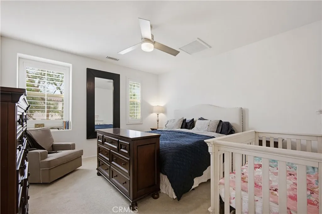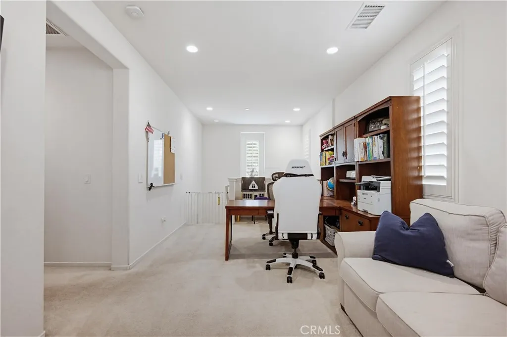 Welcome to this beautifully appointed 3-bedroom, 2.5-bath home in the highly sought-after New Haven Community. From the moment you enter, youre greeted by rich laminate wood flooring, soaring ceilings, and an abundance of natural light, all complemented by recessed lighting and plantation shutters throughout. The kitchen is both stylish and functional, featuring granite countertops, stainless steel appliances, and a generous walk-in pantry. It opens seamlessly to the spacious living and dining areas, perfect for everyday living and effortless entertaining. Upstairs, an extra-wide hallway leads to a versatile loft that can easily serve as a home office, media room, or be converted into a 4th bedroom. Youll also find a convenient laundry room and three well-sized bedrooms. The primary suite offers a relaxing retreat with an oversized walk-in shower, dual vanities, a private water closet, and a large walk-in closet. Two secondary bedrooms share a well-designed Jack-and-Jill bath with dual sinks and a shower/tub combo. Step outside to a private backyard with a comfortable seating area, a fire feature, and patio space ideal for relaxing or hosting. Additional highlights include direct garage access with a mudroom and a Fully Paid-Off solar system with backup battery (approx. $55,000 value), providing energy efficiency and peace of mind. Enjoy resort-style living with community amenities that include pools, spas, clubhouses, BBQ areas, parks, playgrounds, and a dog park.
