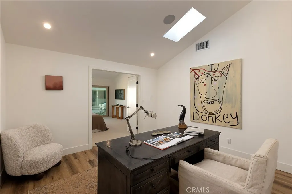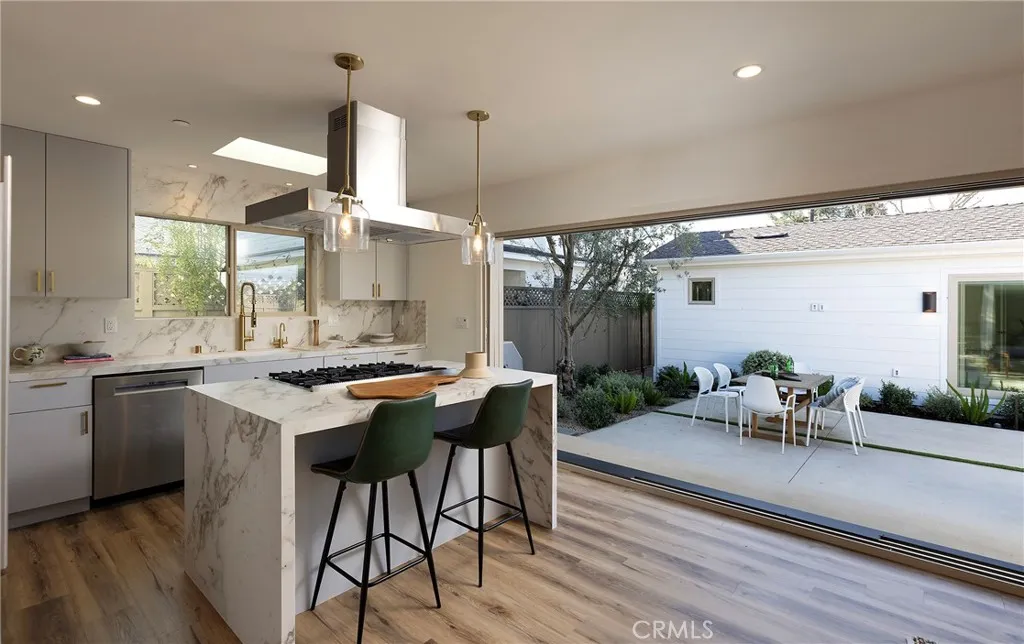 Designed and built by local firm Abode Design + Build, this extensively updated dual-residence property delivers versatility, quality, and a relaxed coastal lifestyle on an expansive 8,000+ square-foot lot in a highly sought-after Eastside Costa Mesa location. Tucked behind a gated entry, the property is surrounded by curated landscaping, newer hardscape, and multiple outdoor spaces created for entertaining, gathering, and everyday enjoyment. The front residence is a reconfigured single-level home offering approximately 1,640 square feet of light-filled living space. Open interiors, high ceilings, skylights, and expansive sliding glass doors create an effortless connection to the outdoors. Wide-plank vinyl flooring runs throughout the main living areas, while the kitchen is finished with Calacatta Venato porcelain countertops, custom cabinetry, and premium appliances. The primary suite features dual closets and a thoughtfully designed bath with elevated tile selections, complemented by well-appointed secondary bathrooms that maintain a consistent design aesthetic. Privately positioned at the rear of the property, the detached appx. 938 sq ft ADUadded in 2025provides a fully independent living experience with two bedrooms, two baths, a full kitchen, and its own entrance, making it ideal for extended family, guests, or rental income. Abundant natural light, indoor-outdoor flow to a private patio, and finishes that echo the main residence ensure continuity throughout the property. A finished, expanded garage of approximately 520 square feet supports both residences. Additional