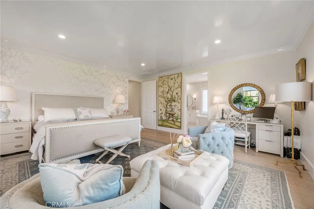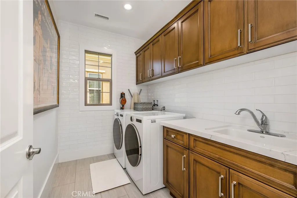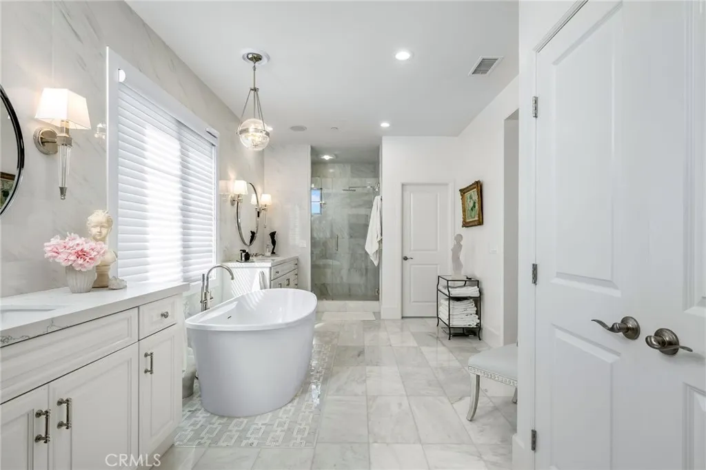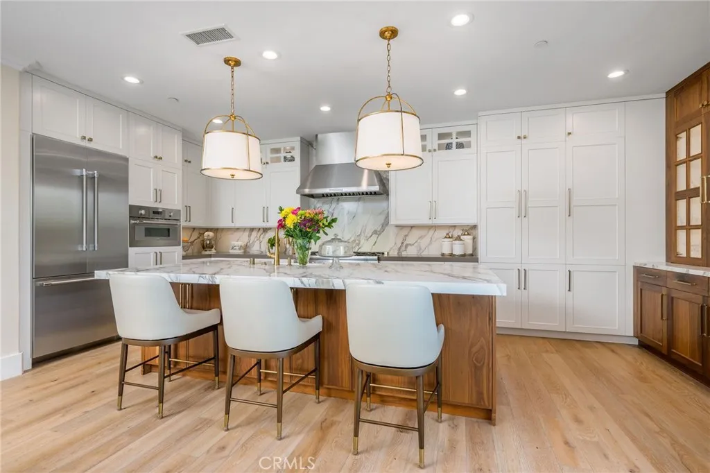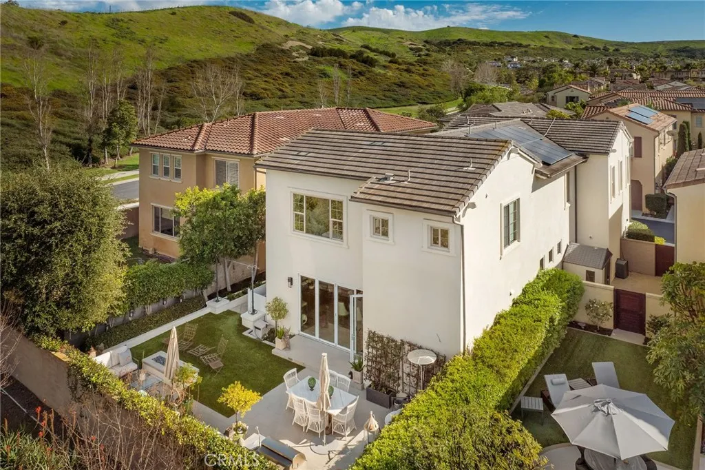 This elegant, fully remodeled Campanilla model home is perched in the hills of San Juan Capistrano. It showcases an exceptional blend of modern design and upscale amenities, making it truly one of a kind. Spanning over 3,000 square feet, this thoughtfully designed residence offers 4 bedrooms, 3 bathrooms, and an open concept floor plan ideal for both everyday living and entertaining. The main level welcomes you with a brand new chic kitchen featuring all Thermador appliances, high end custom cabinetry, porcelain countertops, and a built-in Miele coffee maker. New wood flooring flows throughout the home, complementing the spacious great room with an inviting fireplace, a sophisticated living and dining area, and a charming main floor bedroom. Bi-fold doors off the great room open to a completely redesigned backyard, perfect for entertaining, complete with a built-in BBQ, fire pit, and relaxing lounge areas that take full advantage of the tranquil surroundings. As you head upstairs, the expansive primary suite offers a brand new bathroom with marble floors, floating tub and large walk in closet. Accompanied by generously sized secondary bedrooms, a large loft area, and a brand new upstairs bar equipped with a mini fridge and microwave, ideal for hosting or casual evenings at home. Additional luxury features include designer wall paper, custom lighting accents, convenient built-ins for extra storage, closet organizers, paid in full solar panels, and meticulous craftsmanship throughout that elevates every space. The property also benefits from no Mello Roos, low HOA dues, and c